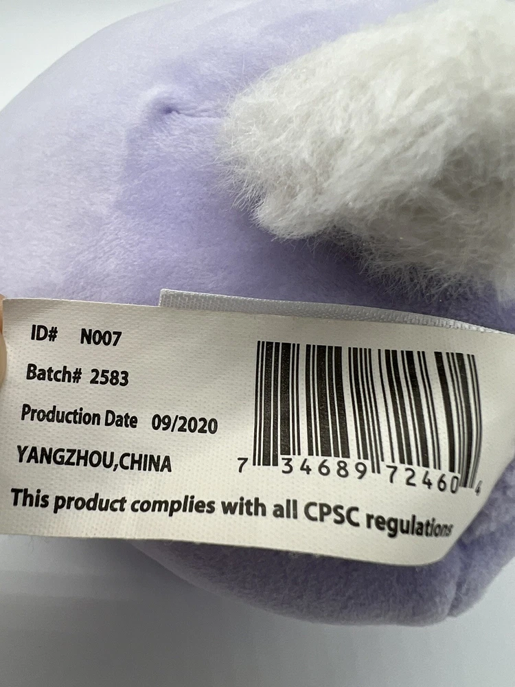 Year:2021Features:Retired, WashableColor:PurpleSize:5"Modified Item:NoOccasion:Easter or Any Occasion for someone who loves bunniBrand:SquishmallowsRecommended Age Range:0+gtin13:734689724604Type:BunnyCharacter Family:SquishmallowsUPC:734689724604Name:BubblesAnimal:Bunny