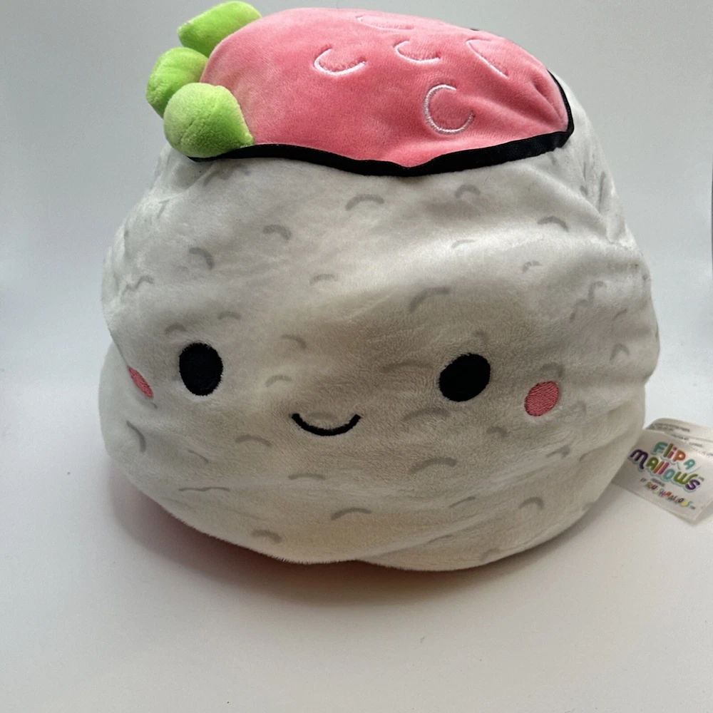 This adorable Squishmallow plush toy features a cute and cuddly design that is perfect for kids and adults alike. With its soft and squishy texture, this toy is sure to bring a smile to anyone's face. The toy measures 8 inches in height and is made by the trusted brand Squishmallows. In addition, this plush toy is part of the Squishmallow FLIP A MALLOW collection, featuring two adorable designs: RAISY Ramen and SHUN Sushi. This toy is perfect for anyone who loves stuffed animals and wants to add a unique addition to their collection.