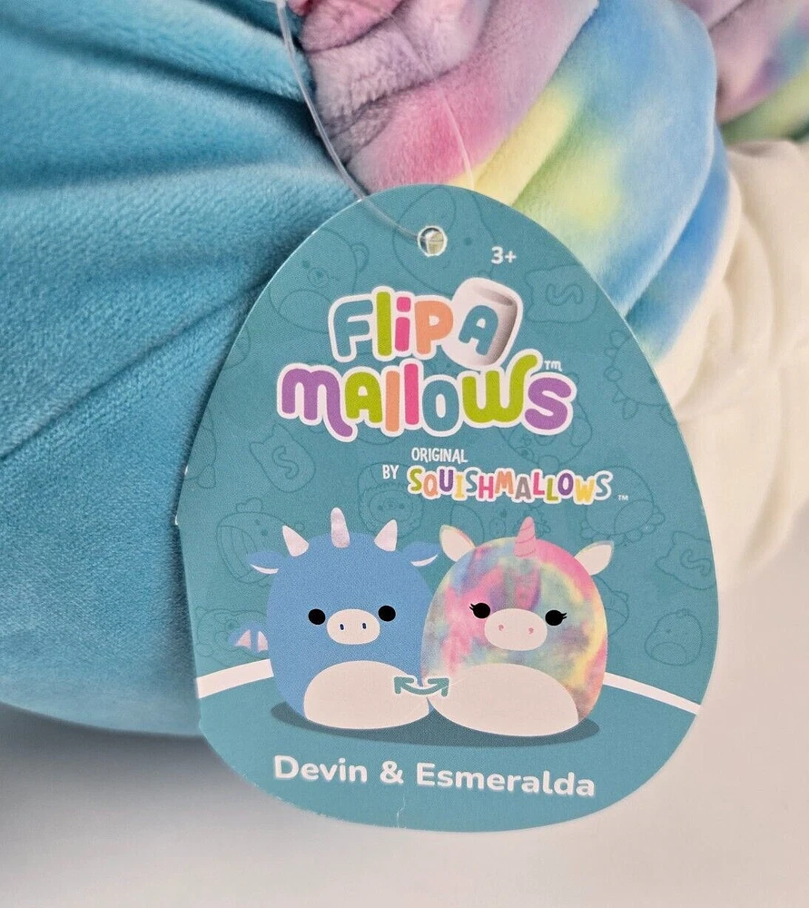 Squishmallow Flip A Mallow Devin Dragon/ Esmeralda Unicorn Plush 12" Reversible KellyToy **REDUCED PRICE** This Squishmallow Flip A Mallow Devin Dragon/Esmeralda Unicorn Plush is a must-have for any stuffed animal lover. With its vibrant multicolor design and reversible feature, this plush is perfect for any occasion and can be enjoyed by kids and adults alike. Made by Kellytoy, this small 12 in. plush is a part of the popular Squishmallows character family. It is recommended for children aged 3 years and up and is sure to bring a smile to anyone's face. This plush is perfect for collectors or as a gift for a loved one. Get your hands on this unique and charming Squishmallow Flip A Mallow Devin Dragon/Esmeralda Unicorn Plush today! We carefully pack each item to prevent breakage. We only charge what the shipper charges and cannot control the shipping costs. We do not accept returns/refunds unless item is not as described per eBay policy or the item arrives damaged or broken beyond anything noted in the condition field or pictures. If you have any questions about any of our listed items, feel free to email us.