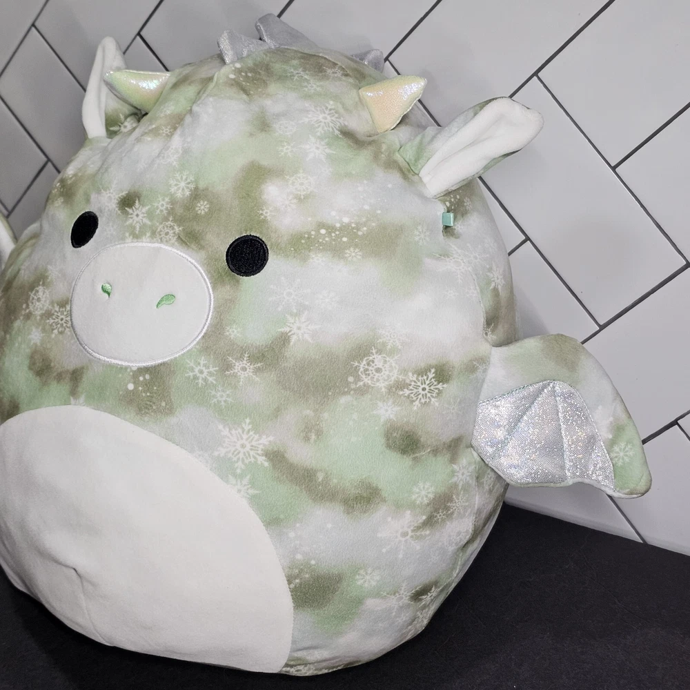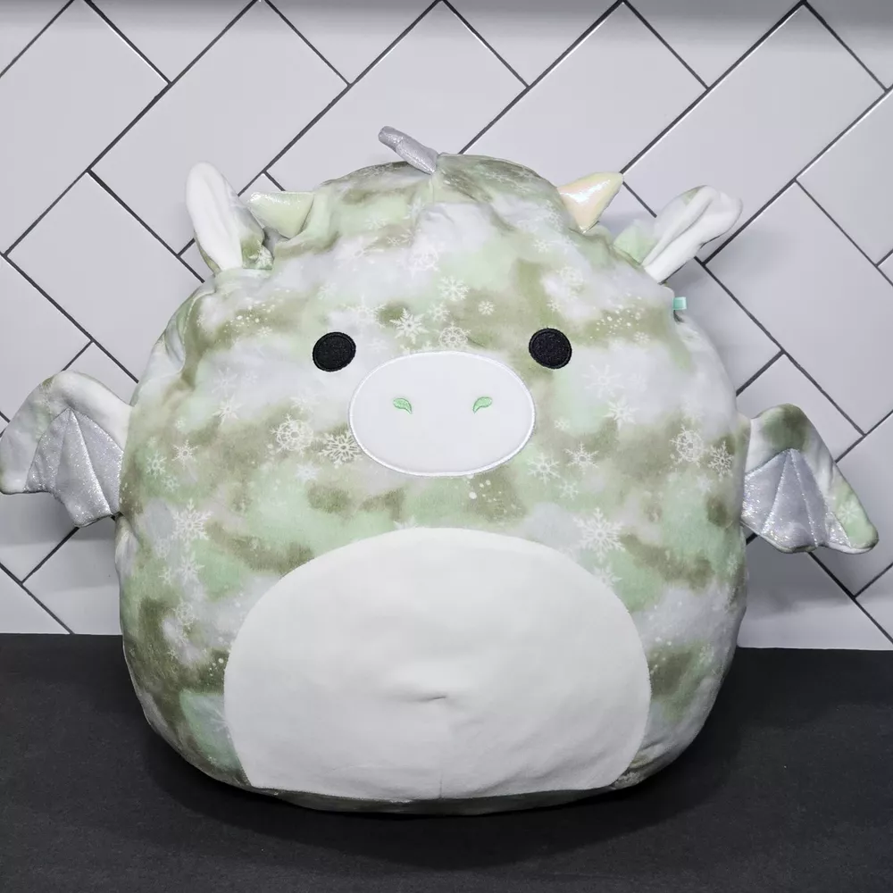 You Are Bidding On: 1 Plush Squishmallow 16" Will The Dragon Items Received: Squishmallow Will The Dragon Green Tie-Dye 16" Plush About Items: Squishdate 12.01.2020 Bio: Will's favorite thing to do is play in the snow; building snow forts, decorating snow dragons, and especially snowball fights. He builds a huge snow castle to play in, it even has a moat! Appearance: Will is a dragon with a tie-dye pattern that is green, brown and white. He has a cream snout, belly and inner ears. His wings, ears and small parts of his body have silver glitter on them. His spines are silver and he has two black eyes. Orders carefully packaged Please message if you have questions!
