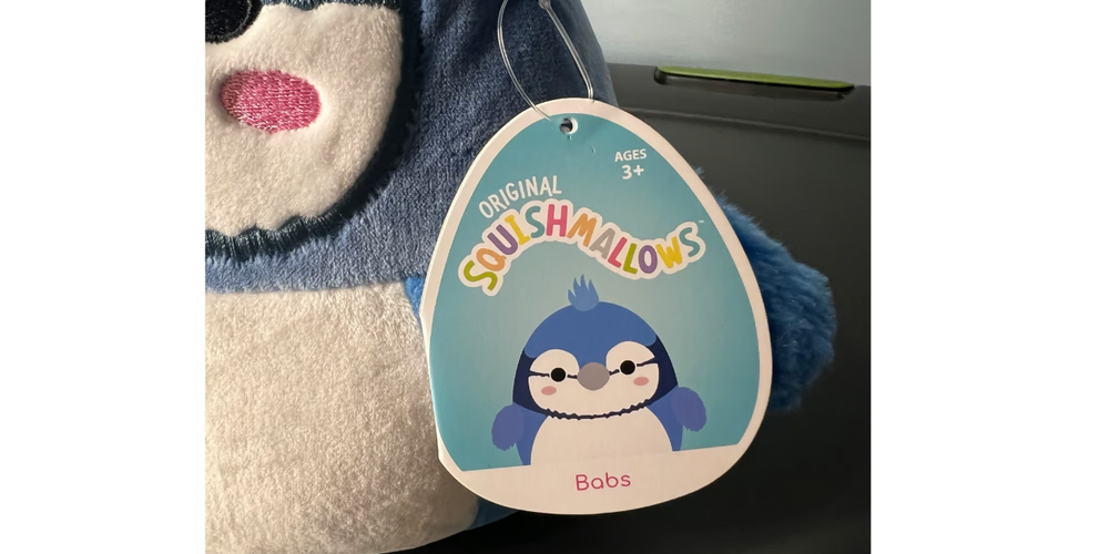 This adorable Squishmallows plush toy is perfect for any bird lover! Meet Babs the Blue Jay, a cuddly friend measuring 8 inches of pure joy. With a soft and squishy texture, this toy is perfect for snuggling and playtime. The blue color is eye-catching and adds a pop of color to any collection. Made by the trusted brand Squishmallows, this small-sized plush is a great addition to any stuffed animal collection. Whether you're looking for a gift for a child or simply adding to your own collection, Babs the Blue Jay is sure to bring a smile to your face.
