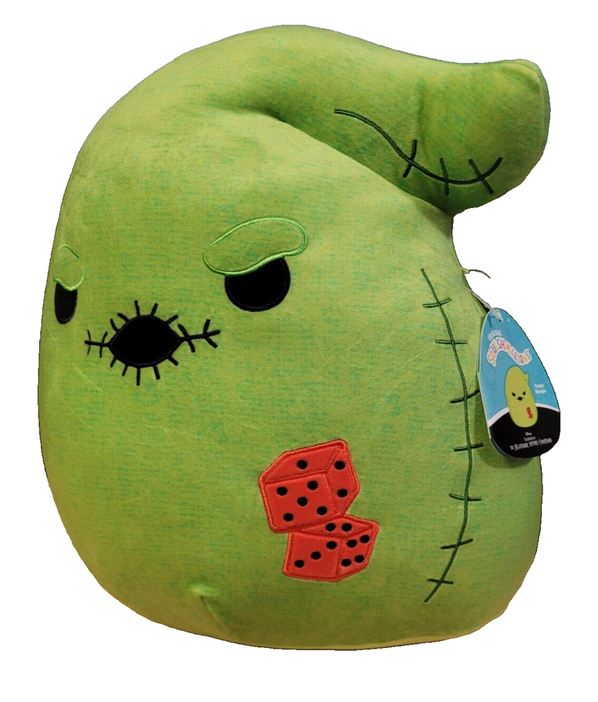 Get ready to add a limited edition Squishmallow to your collection with this 14" Oogie Boogie from The Nightmare Before Christmas. This large plushy is perfect for Halloween and is recommended for ages 3 and up. The green color and medium size make it a great addition to any stuffed animal collection. With its unique design and character family, this Squishmallow is sure to be a hit with fans of The Nightmare Before Christmas. Don't miss out on the chance to add this rare item to your collection. Order now and experience the plushy goodness of this beloved character. Buy with confidence. 100% feedback score. Fast shipping