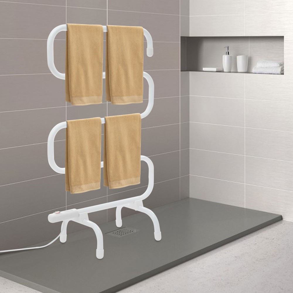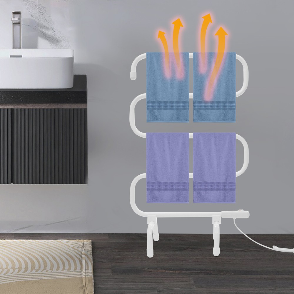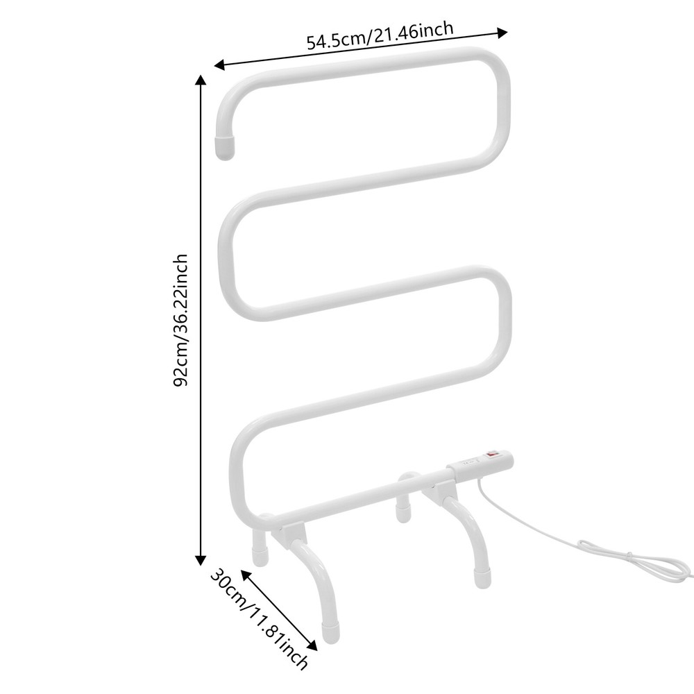 Description Towels left in damp bathrooms for too long can easily breed bacteria, produce a foul odor, and lead to a series of skin problems. Our electric towel warmer can solve these problems. The combination of high-class material and exquisite craftsmanship makes it sturdy and durable. Constant temperature heating can quickly dry your clothes and towels, keeping them away from moisture. With its generous appearance, it can embellish your bathroom. S-shaped Electric Towel Warmer Quick Heating Heated Towel Racks for Bathroom Description Key Features High-class Material: Made of high-class low-carbon steel with a plastic spraying process, it is corrosion-resistant and rustproof. Even in the humid environment of a bathroom, it can ensure long-term use. Large Space: The S-shaped design makes more clever use of space, improving space utilization. The 5 heating tubes can easily meet the towel-drying needs of your entire family. Strong Load-Bearing Capacity : The high-class material and stable support base allow it to bear up to 22.05 lbs. It will not easily wobble or collapse, giving you peace of mind during use. Quick Heating : You just need to plug in the power and turn on the switch, and the product will quickly start heating up, reaching its optimal temperature (113-122°F) after 30 minutes, quickly drying the moisture of towels and clothes. Energy Saving : The low energy consumption of 100W and electric heating wire technology make it more energy-efficient. Safety Protection : It features a waterproof switch with a high waterproof of IPX4, effectively preventing splashes and moisture from entering, giving you more peace of mind during use. Beautiful Appearance : The elegant white color, unique S-shaped structure, and smooth lines give it a charming appearance. It can match most decor styles, becoming a beautiful focal point in your bathroom. Simple Installation: This product is simple in structure, equipped with complete accessories, and easy to install. You can finish the installation by yourself. Details 4 Feet: Equipped with four feet, the product can be securely placed on the ground without easily tipping over. Smooth Edges: They can protect your hands and towels from getting scratched and improve the safety of use. Application This product can be used for bedrooms, bathrooms, kitchens, laundry rooms, hotels, spas, swimming pool locker rooms, and more. It is ideal for hanging and organizing your face towels, bath towels, baby clothes, baby blankets, and underwear. It can be used in all seasons (spring, summer, autumn, and winter). Specifications Style: Modern Color: White Material: Low-carbon Steel Process: Plastic Spraying Shape: S-shape Assembly Required: Yes Mount Type: Free Standing Switch Waterproof Rating: IPX4 Power Source: Corded Electric Plug Standard: US Standard Voltage: AC 100-120V Power: 100W Frequency: 50/60Hz Total Load Bearing Capacity: 10kg/22.05 lbs Heating Tubes: 5 Surface Temperature: 45-55°C/113-131°F Constant Temperature: 45-55°C/113-131°F Drying Space: 3m/9.84ft Tube Diameter: 25.4mm/1in Power Cord Length: 1.4m/4.59ft Product Size: 54.5*30*92cm/21.46*11.81*36.22in Package Size: 83*60*3cm/32.68*23.62*1.18in Gross Weight: 3.4kg/7.5 lbs Net Weight: 3.23kg/7.12 lbs Package Included 1* Electric Towel Warmer 1* English Manual All Accessories for Installation Notes Please note that this product does not include towels and clothing. Please use this product within its load-bearing range. Please read the operating manual completely before use. And pay particular attention to the safety instructions included. When you do not use the towel rack, please unplug it in time, so as not to cause safety hazards due to prolonged power supply. Please note that the specific drying time may be affected by factors such as the environment, towel material, and the thickness of the material. Please allow the slight color difference caused by the shooting light and 1-3cm error due to manual measurement, and make sure you do not mind before you order. Payment Delivery details Terms of sales About us Contact us Payment We accept ebay payment 。 Fees such as import duties, taxes are not included in the item price or shipping costs. These charges are the buyer's responsibility. Delivery details Shipping: 2-9 working days to: USA Terms of sales We maintain high standards of excellence and strive for hundred percent customer satisfaction. Feedback is very important to us. We hope that you contact us immediately before you give neutral or negative feedback, so that we can address your concerns. It is impossible to address issues if we do not know about them! About us Your satis faction is our ultimate goal. We work hard to earn your trust and future business. Our certified technicians have tested each item before shipping. The unit comes with 1 year limited warranty on all manufacturing defects. a) If you receive a defective item, you may return it or ask for a discount. Please contact us within 14 days after you receive the package. b) What you returned must be intact and in its original packaging as re? u. Customer is responsible for shipping costs of the returned item. c) We will cover the cost of shipping back t with the shipping rate indicated in the registration page. We will send you a new unit or refund the full payment you paid. Thank you. Contact us Business Hour Business Hour: Monday To Friday: 8:30 AM to 5:00 PM (Beijing China time) Due to time zones, our reply to your questions may not be immediately. But within above working time, we will reply your email within 24 hours. If it's non-workdays, please kindly be patient and wait till Monday. Please contact us with ebay message. Please feel free to contact us if you have any questions. Monday To Friday: 8:30 AM to 5:00 PM (Beijing China time) Due to time zones, our reply to your questions may not be immediately. But within above working time, we will reply your email within 24 hours. If it's non-workdays, please kindly be patien