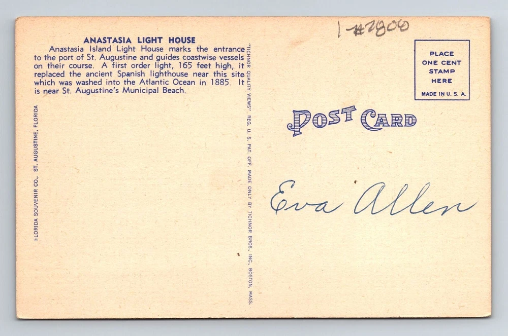 Size: Standard (5.5 x 3.5 in) Country/Region of Manufacture: Unknown Era: Vintage Material: Paper Postage Condition: Unposted Type: Printed (Lithograph) Region: Florida Theme: Cities & Towns Unit of Sale: Single Unit Original/Licensed Reprint: Original Subject: Cities & Towns City: St Augustine Country: USA