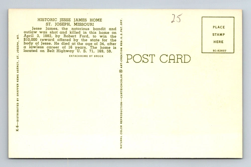 St Joseph MO-Missouri, Historic Jesse James Home, Vintage Postcard