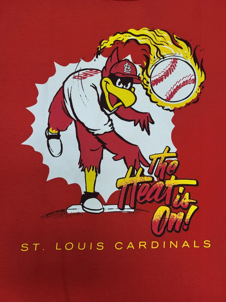 St. Louis Cardinals Fred Bird Tshirt Shirt Red Heat is On SGA 2018 XL . Condition is Used. Shipped with USPS Ground Advantage.