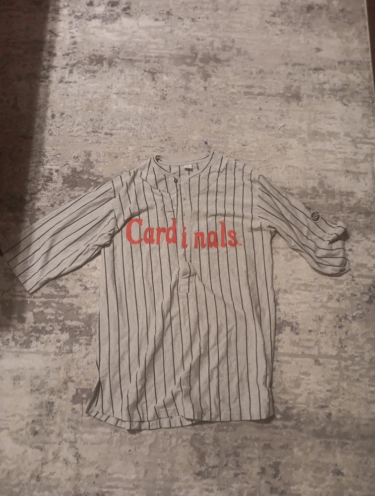 Show off your love for the St. Louis Cardinals with this officially licensed Fabick pinstripe jersey. Perfect for any Major League Baseball fan, this gray jersey features the team's iconic logo and is made with high-quality materials for a comfortable fit. The size is a men's Large and the jersey is perfect for regular season games. This throwback game giveaway is a must-have for any fan of the St. Louis Cardinals. The jersey is made in Pakistan and is perfect for those who want to show off their team spirit. Get your hands on this jersey today and add it to your collection of sports memorabilia!