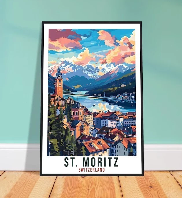 St Moritz Travel Print Swiss Wall Art Wall Hanging Home Living Décor