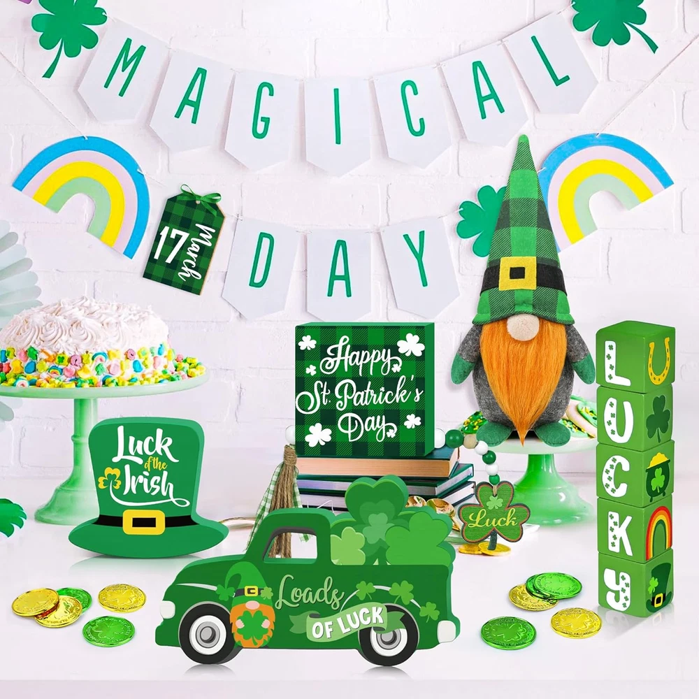 Store New Arrivals Add to Favorite View Feedback Contact Fast deliveries to the customer's home Quality customer service John Make the customers happy! St Patricks Day Decor, 12 Pcs St Patricks Day Tiered Tray Decor - Plush Gnome, St Pattys Day Wooden Signs, Lucky Dice, Bead Garland, Saint Patricks Day Decorations for Table Mantel Shelf Desk Description 【St Patricks Day Tiered Tray Decor Set】: This bundle includes 1*plush gnome, 1*square plaid wooden block, 1*irish hat sign, 1*loads of luck truck sign, 1*farmhouse beads garland, 1*March 17 sign, 5*dices printed 'LUCKY' and holiday patterns, and 10*golden and green coins. (Note: tray NOT included) 【High-Quality Irish Wooden Signs】: These st patty's day table signs are made of wooden blocks, laser-cut, and clearly painted, won't fade, durable for a long time. The thickness of all blocks is 0.6 inches, which can support staying upright by itself. Every item is the perfect tray size! 【Handmade St Patrick's Day Gnome】: Our saint patrick day gnome is mainly made of polyester. Felt, plush, and knit fabric will give you a soft touching feeling. Wire in the hat, bendable for different poses. With heavy sandy bottoms, not easy to tip over. 【Patricks Day Decorations for Home】: Designed with all symbol of st patricks day, painted with vibrant color, combine 21 PCS st pattys day decor. Enough quantity for farmhouse tiered tray decor, display shelf, kitchen table, and themed party decor. 【St Patricks Day Decor Gift Choice】: Great St.Patrick gift to your family, friends, and colleagues. Decorate your home or office with these st patrick table decorations, add more festive! Celebrate lucky day with this adorable patrick wooden decor set. tiered tray decor Style St Patricks Day Number of Items 21 Country of Origin China Is Oven Safe No Theme Holiday Batteries required No Material Wood/Felt/Plastic Finish Type Painted Package Dimensions 6.77 x 6.77 x 3.23 inches Is Dishwasher Safe No Item Weight 1.17 pounds Occasion St Patrick S Day Specific instructions for use Indoor Special Feature Tiered Color Green Shape Novelty Recommended Uses For Product Decoration, St. Patrick's Day celebrations Tray Type Tiered Tray Finish types Painted Product Care Instructions Hand Wash Only Number of pieces 5 ABOUT US We offer the best prices around on high quality products. Our E-store includes media such as books, movies, music and games while offering electronics, toys, sporting apparel, clothing, tools, general home, garden items and more. SHIPPING We are always working hard to ensure your package arrives as soon as possible. Please understand that some factors like weather, high postal traffic, and the performance of shipping companies are outside of our control. We offer free shipping to the lower 48 states and ship within 2 business days of payment, usually sooner. We do not accept P.O. Boxes. Please provide a physical address. For shipping outside of the continental USA, we only use eBay's Global Shipping Program. The item is shipped to KY and then sent to the rest of the world. International customers are responsible for all duties and taxes. Continue to 'check out' to calculate costs for shipping the item to your country. Messages regarding eBay's Global Shipping Program MUST be directed at eBay EXCLUSIVELY. RETURNS We offer a 30-Day Return Policy on items in which you are not completely satisfied with. You have the option of a full-refund or an exchange of the item. No returns are available on items shipped outside of the USA PAYMENT We accept PayPal. CONTACT US This page content is yet to come Please ad us to your favorite seller and visit again later Thank You CUSTOMER SATISFACTION We try our very best to make sure every customer is completely satisfied. If there's a problem, message us! We're happy to help. WE ACCEPT