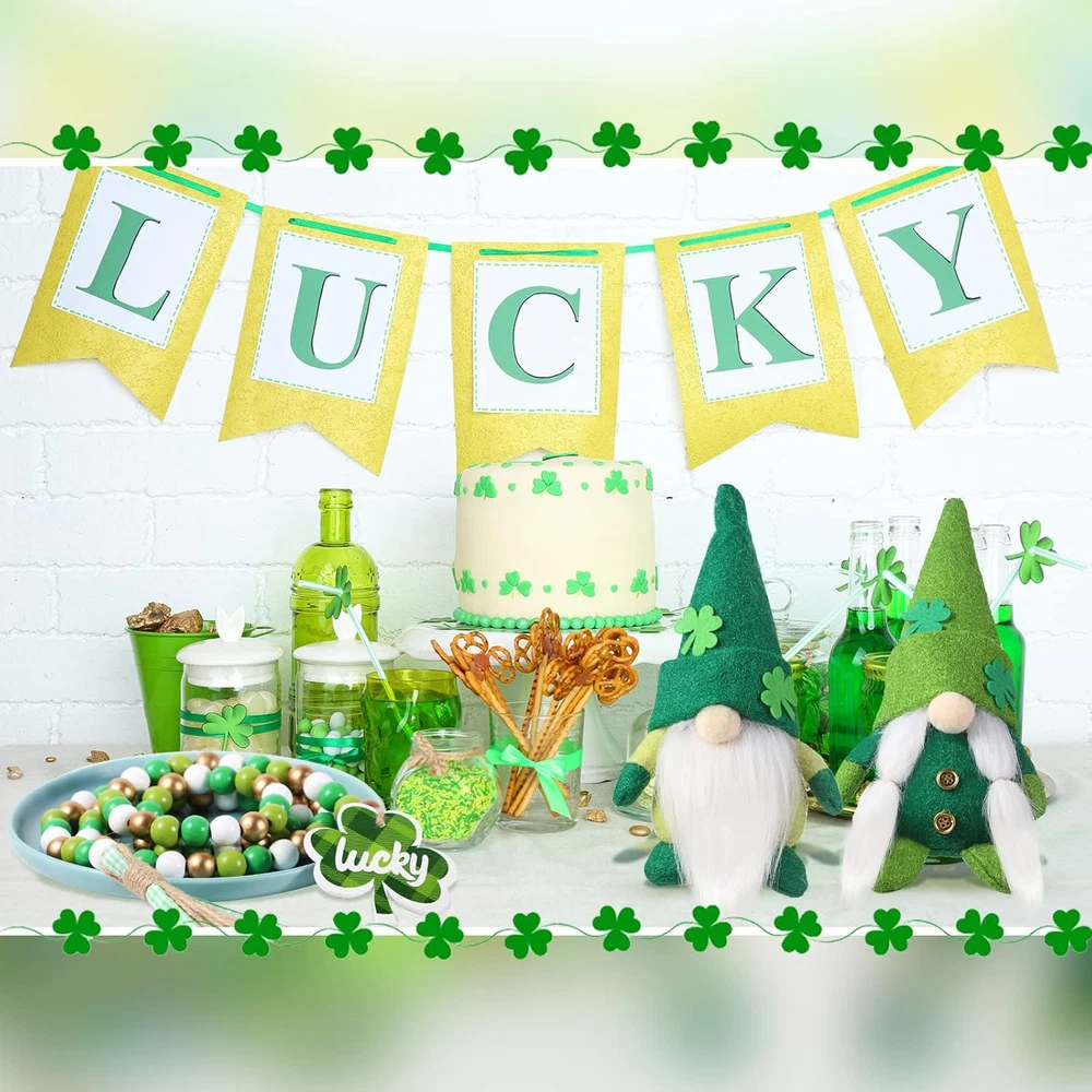 Store New Arrivals Add to Favorite View Feedback Contact Fast deliveries to the customer's home Quality customer service John Make the customers happy! St Patricks Day Decorations 2Pcs St. Patricks Day Gnome Plush Irish Elf Swedish Tomte Leprechaun and 1Pcs St Patrick'S Day Wood Beads Garland with Wooden Green Shamrock Farmhouse Pendant Description Package information: you will receive 2 gnome decors and 1 piece wooden wood bead garland with wooden sign, cute in style, suitable for your boyfriend or girlfriend on holiday Safe and quality material: this gnomes plush is made of soft felt, cotton fabric, and the heavier bottom design allows them to stand on their own; Also this couple gnome doll is handmade, so there will be some variation in size and weight; Our romantic bead garland is made of natural wood beads and quality jute, safe and reliable, exquisite workmanship, no burrs or wood chips Romantic and warm St Patrick's Day gift: this gnome decor is a couple doll, suitable as a St Patrick's Day gift for your beloved, they will love these lovely gifts full of romance and warmth, it is the ideal gift to express love on St Patrick's Day Suitable size: this gnomes plush is divided into 2 different models, which are designed with ideal size, the total length of the wooden bead strand is about 55.2 inches, ideal size for your decorative works Cute and extensive decoration: this couple gnome doll can create a romantic holiday atmosphere for anniversaries, Valentine's Day, St Patrick's Day, Easter, summer and other days, suitable for placing on tables, beds, mantels, stairs, windows, shelves and other places to add a romantic and warm atmosphere Features: Wide range of occasions: This farmhouse festival decor is suitable for Valentine's Day, St Patrick's Day or anniversary to decorate the room to add a romantic holiday atmosphere, or as a gift for your lover. Exquisite and lovely appearance: These gnomes' decorations are exquisite in appearance and reliable in quality, and will stay with you for a long time. Specifications: Material: Gnomes plush: soft felt, cotton fabric Bead garland: wood, jute Color: as pictures show Size: Gnomes plush: approx. 13.39 x 3.94 x 3.15 inches, 12.6 x 3.54 x 2.95 inches Bead garland: approx. 55.2 inches long, 0.63 inches in diameter Small wooden hearts: approx. 3.15 x 3.15 inches Package includes: 1 x Gnomes plush 1 x Bead garland 1 x Small wooden pendent Notes: Manual measurement, please allow slight errors on size. The color may exist slight difference due to different screen displays. Winding risk may exist, please keep away from little kids. Item Weight 10.2 ounces Country of Origin China Package Dimensions 7.95 x 6.73 x 2.99 inches ABOUT US We offer the best prices around on high quality products. Our E-store includes media such as books, movies, music and games while offering electronics, toys, sporting apparel, clothing, tools, general home, garden items and more. SHIPPING We are always working hard to ensure your package arrives as soon as possible. Please understand that some factors like weather, high postal traffic, and the performance of shipping companies are outside of our control. We offer free shipping to the lower 48 states and ship within 2 business days of payment, usually sooner. We do not accept P.O. Boxes. Please provide a physical address. For shipping outside of the continental USA, we only use eBay's Global Shipping Program. The item is shipped to KY and then sent to the rest of the world. International customers are responsible for all duties and taxes. Continue to 'check out' to calculate costs for shipping the item to your country. Messages regarding eBay's Global Shipping Program MUST be directed at eBay EXCLUSIVELY. RETURNS We offer a 30-Day Return Policy on items in which you are not completely satisfied with. You have the option of a full-refund or an exchange of the item. No returns are available on items shipped outside of the USA PAYMENT We accept PayPal. CONTACT US This page content is yet to come Please ad us to your favorite seller and visit again later Thank You CUSTOMER SATISFACTION We try our very best to make sure every customer is completely satisfied. If there's a problem, message us! We're happy to help. WE ACCEPT