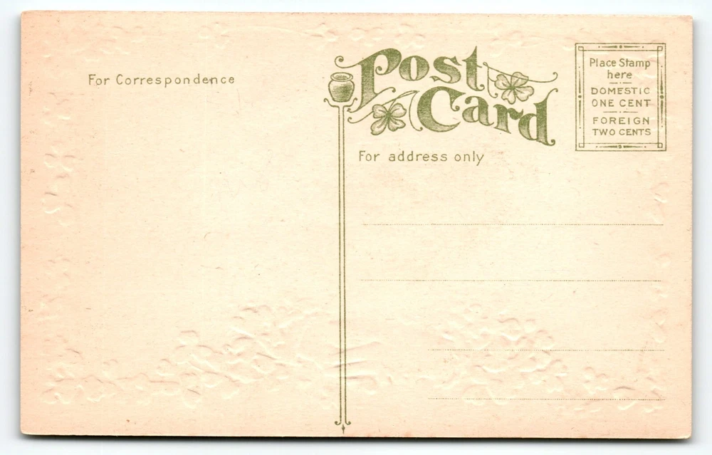 Unposted. Antique vintage original embossed Saint Patrick's Day postcard. Has some age wear. Stock#sp154. Additional postcards are in our store. All post cards are old originals and may or may not have writing on back. Bundle and save by using cart and making single payment.