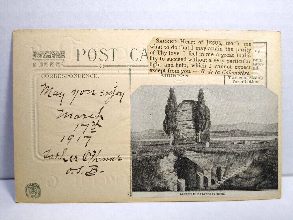Non posted with paper text and photo glued to back side. Antique vintage original embossed Saint Patrick's Day postcard. Has corner dings, spotting, and age wear. Stock#sp59. Additional postcards are in our store. All post cards are old originals and may or may not have writing on back. Bundle and save by using cart and making single payment.