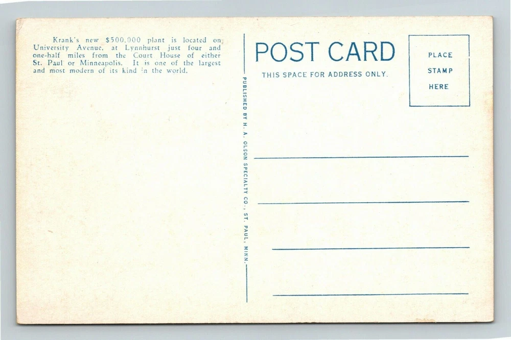 St Paul MN-Minnesota, Kranks Manufacturing Building, Univ Ave, Vintage Postcard