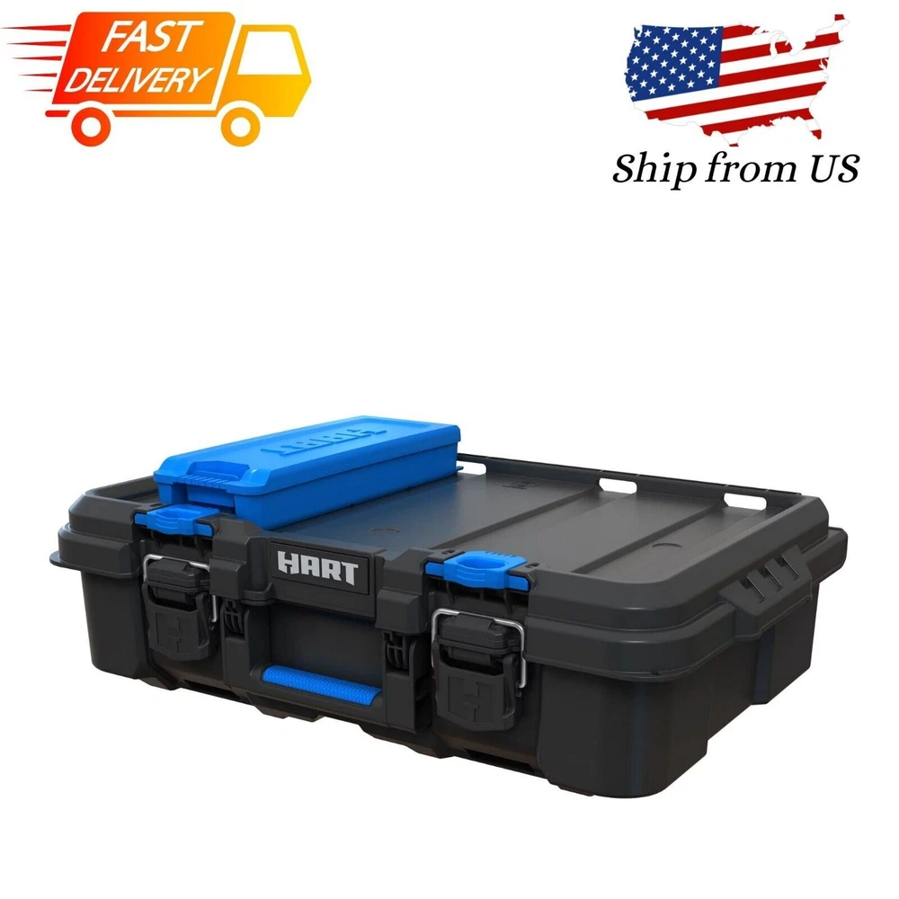 Welcome to My Stores, Happy Shopping. Hart Stack Modular Storage System Tool Box Blue Small Parts Case And Dividers Description Are you looking for a power tool case that offers custom protection for your power tools or hand tools: Hart knows better than anyone that power tools and hand tools come in all shapes and sizes. The Hart suitcase style tool box with the blue tool and parts organizer can be customized by adding foam filling inside the case to match the exact shape of your specific parts, tools, blades, markers, brushes, paints, or whatever else you want held in place (foam not included). Keeping your tools in great shape has never been more personal! Hart Stack System Power Tool Case with Small Tool Blue Internal Case with Blue Dividers, Mobile Tool Storage and Organization, Black with Blue Accents Features: Ideal case for weekend warriors, home DIY-ers and serious crafters Serves as a Power Tool Case, and allows you to customize foam filling for your specific power tools or accessories (Note: foam is not included in the product) Ergonomic carry handle for convenient portability IP54 seal protects your tools from dust, moisture, and accidental contact with water – making it ideal for outdoor use Durable plastic construction defends contents from dings and knocks Metal latches securely fasten the case at all times, especially when you're on the move The HART Power Tool Case has an opening for you to insert a padlock keeping your belongings safe from theft (lock not included) Internal blue small tool organizer case and dividers keep your hardware and small tools handy. Keep your small parts tidy & handy with a movable organizer case & 2 dividers included. The organizer can either be clipped inside for internal storage or stacked on top of the case for easy access. Can be easily stacked onto any of the storage units within the HART Stack System Load Capacity - 47.5 LBS Specifications Features Removable, removable_internal_compartments:_organizer_and_dividers Manufacturer Part Number 252719 Assembled Product Weight 4.167 lb Manufacturer Keter Color Black Assembled Product Dimensions (L x W x H) 20.67 x 13.50 x 5.79 Inches