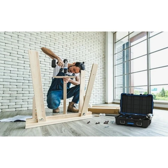 Product details Are you looking for a power tool case that offers custom protection for your power tools or hand tools: Hart knows better than anyone that power tools and hand tools come in all shapes and sizes. The Hart suitcase style tool box with the blue tool and parts organizer can be customized by adding foam filling inside the case to match the exact shape of your specific parts, tools, blades, markers, brushes, paints, or whatever else you want held in place (foam not included). Keeping your tools in great shape has never been more personal! Hart Stack System Power Tool Case with Small Tool Blue Internal Case with Blue Dividers, Mobile Tool Storage and Organization, Black with Blue Accents Features: Ideal case for weekend warriors, home DIY-ers and serious crafters Serves as a Power Tool Case, and allows you to customize foam filling for your specific power tools or accessories (Note: foam is not included in the product) Ergonomic carry handle for convenient portability IP54 seal protects your tools from dust, moisture, and accidental contact with water – making it ideal for outdoor use Durable plastic construction defends contents from dings and knocks Metal latches securely fasten the case at all times, especially when you're on the move The HART Power Tool Case has an opening for you to insert a padlock keeping your belongings safe from theft (lock not included) Internal blue small tool organizer case and dividers keep your hardware and small tools handy. Keep your small parts tidy & handy with a movable organizer case & 2 dividers included. The organizer can either be clipped inside for internal storage or stacked on top of the case for easy access. Can be easily stacked onto any of the storage units within the HART Stack System Load Capacity - 47.5 LBS
