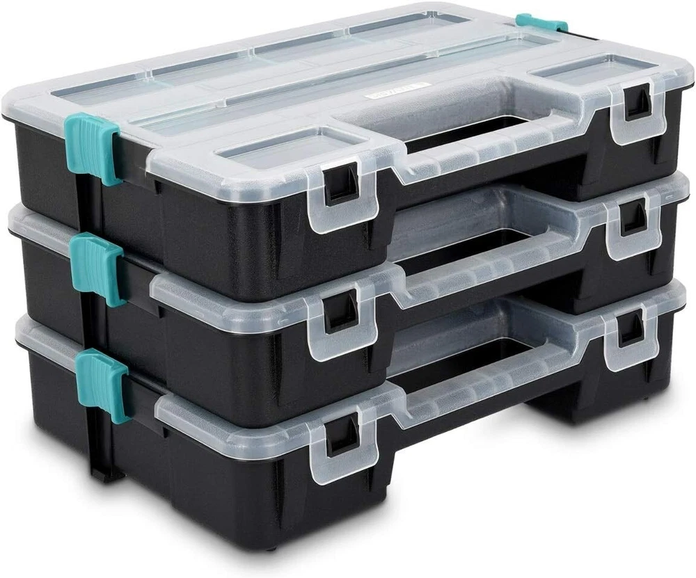 Premium Stackable Organizer Case - 3 Black Plastic Boxes for Tools & Accessories ‹ › ‹ › ‹ › ‹ › ‹ › ‹ › ‹ › ‹ › ‹ › ‹ › Premium Stackable Organizer Case -3 Black Plastic Boxes for Tools & Accessories Features: Master Organizer: Simplify your DIY experience by keeping all your accessories and tools handy and tidy. Tailor Made: Adjustable compartments allow you to customize box sizes for larger accessories like screwdrivers and wrenches. Secure Closure: 4 hooks on the front and sides ensure a tight lid, keeping your tools securely in place. Solid & Durable: Crafted from sturdy plastic with a built-in handle for added convenience during transport. Dimensions: Single box: 12.4" x 8.9" x 2.6" (31.5cm x 22.5cm x 6.6cm); Two stacked boxes: 12.4" x 8.9" x 5.3" (31.5cm x 22.5cm x 13.4cm); Three stacked boxes: 12.4" x 8.9" x 7.8" (31.5cm x 22.5cm x 19.8cm). Benefits: Ideal for both DIY beginners and professionals, providing essential organization for your tools. Customizable compartments accommodate a variety of items, ensuring no space is wasted. Robust design ensures longevity, making it a worthwhile investment for any workshop. Lightweight yet durable, allowing for easy transport and accessibility. Why choose our Premium Stackable Organizer Case? Embrace the art of organization with our Premium Stackable Organizer Case. Designed with the DIY enthusiast in mind, it offers both versatility and durability. Each box can be adjusted to fit everything from tiny screws to hefty tools, so you can have it all neatly stored and within reach. The secure closure system ensures that your items remain safe and sound, while the sturdy build guarantees this case lasts through countless projects. Transform your workspace today—choose our Premium Stackable Organizer Case and elevate your crafting experience! Shipping Free & Fast Shipping - We offer free shipping to most of the USA with a normal delivery time of 3-7 days. However, due to the current situation, additional delivery time (up to 3 weeks) may be required for some items. Alternative Carriers - We may use alternative carriers (e.g. USPS, FedEx, UPS, etc.) to ensure your package arrives safely and on time. Due to the use of multiple carriers, we are unable to provide a tracking number automatically. Handling Time - Orders are processed and shipped within 1-2 business days of receiving cleared payment. Shipping Restrictions - Shipping to Alaska, Hawaii, Puerto Rico, Guam, and other US territories may incur shipping charges or delivery restrictions. Please contact us before ordering, or your order can be refunded/cancelled. State Restrictions - There may be restrictions based on your state of purchase. For example, certain items may not be shipped to California due to state regulations. Contact for Tracking Updates - If you require tracking updates or have any concerns about the delivery of your order, please feel free to contact us, and we will be happy to assist you. Return 30-Day Hassle-Free Returns - We want you to be completely satisfied with your purchase. If you are not, you can return the item within 30 days of receiving it for a full refund or exchange. Easy Return Process - To start a return, simply contact us and we will provide you with a prepaid return shipping label and detailed instructions. Restocking Fee - There are no restocking fees for returns. However, the buyer is responsible for return shipping costs if the return is not due to a seller's error. Refund Processing Time - Refunds will be processed within 5 business days of receiving the returned item in its original condition. Payment We accept all major credit cards, PayPal, and Apple Pay for your convenience. Your payment information is secure and encrypted to ensure a safe and seamless transaction. Please complete your payment within 3 days of purchase to avoid any delays in shipping. Feedback Your feedback is extremely important to us. We strive to provide the best products and customer service possible. If you are satisfied with your purchase, please take a moment to leave us a positive review. If you have any concerns or issues with your order, please contact us before leaving negative feedback. We are committed to resolving any problems and ensuring your satisfaction. Contact Us If you have any questions or concerns, please feel free to reach out to our customer support team. You can contact us through the eBay messaging system. We are available Monday to Friday, 9:00 am to 5:00 pm EST, and we will do our best to respond to your inquiry within 24 hours. Buy it now and enjoy a pleasant shopping experience! UPC: Not Set Unit Quantity: 3 Material: Plastic Features: Stackable,Adjustable Divider,Removable Divider,Secure Closure,Durable,Transportable Mounting: Free Standing Theme: Not Set Brand: Unbranded Item Height: Storage Box with Dividers Item Length: Storage Box with Dividers Item Width: Storage Box with Dividers Type: Container Size: Large Color: Black Capacity: 81 - 120 Quarts Item Weight: Less Than 2 lb Number of Items in Set: Three-Piece Item Depth: Less Than 5 in MPN: Not Set Model: Not Set Number in Pack: 3 Number of Compartments: 8 Shape: Rectangle Pattern: Not Set Style: Contemporary Country/Region of Manufacture: Not Set Original/Reproduction: Not Set Finish: Matte Unit Type: Unit Assembly Required: Not Set Personalize: Not Set