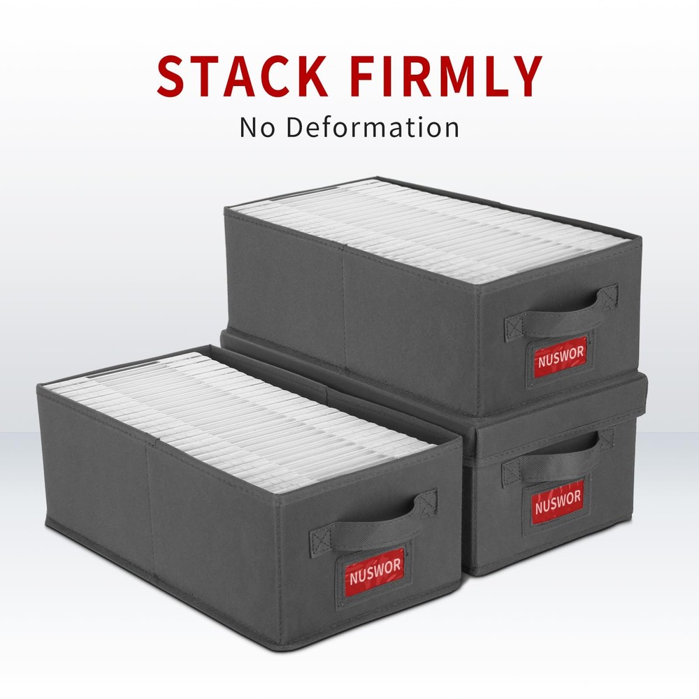 If you're a movie buff, then our DVD case holder organizer is a must-have accessory for you. This stackable DVD storage box offers the perfect solution to protect, organize, and store your DVDs. The box is skillfully crafted from thick non-woven fabric and high stiffness cardboard, ensuring durability and long-lasting use. Its clever design allows for categorized storage, making it quick and easy to find the DVD you want. It also isolates dust and prevents scratches, ensuring your collection remains in pristine condition. It can hold up to 25 DVDs in cases and can be easily stacked for convenient storage. Say goodbye to clutter and hello to a neat, tidy space with our DVD Case Storage Box & Organizer. 【Ample Space & Easy Access】With our DVD Case Holder Organizer, say goodbye to cluttered DVDs. It's designed to hold up to 25 DVDs in cases, making it quick and easy to find the DVDs you need while keeping your space neat and tidy. 【Quality Material & Durability】Made from thick non-woven fabric and high stiffness cardboard, our DVD Storage Boxes promise to provide enduring service. It's a perfect fit for DVD enthusiasts who value their collection and want their storage options to last. 【Protective & Secure】Say no to scratches and dust. Our DVD Storage boxes offer optimum protection for your treasured DVDs. The lid helps isolate dust, while the sturdy build prevents your collection from scratches. 【Stackable for Convenience】This DVD holder box is designed to be stackable, offering you maximum space utility. By stacking your DVD Cases, you optimize space and make room for even more DVDs in the future. 【Sized to Perfectly Fit】At 15.75 x 8.1 x 6.1 inches, our DVD Holder Organizer is designed for you. It's just the right size to categorize your DVDs efficiently and fits seamlessly into your entertainment center or on your bookshelf.