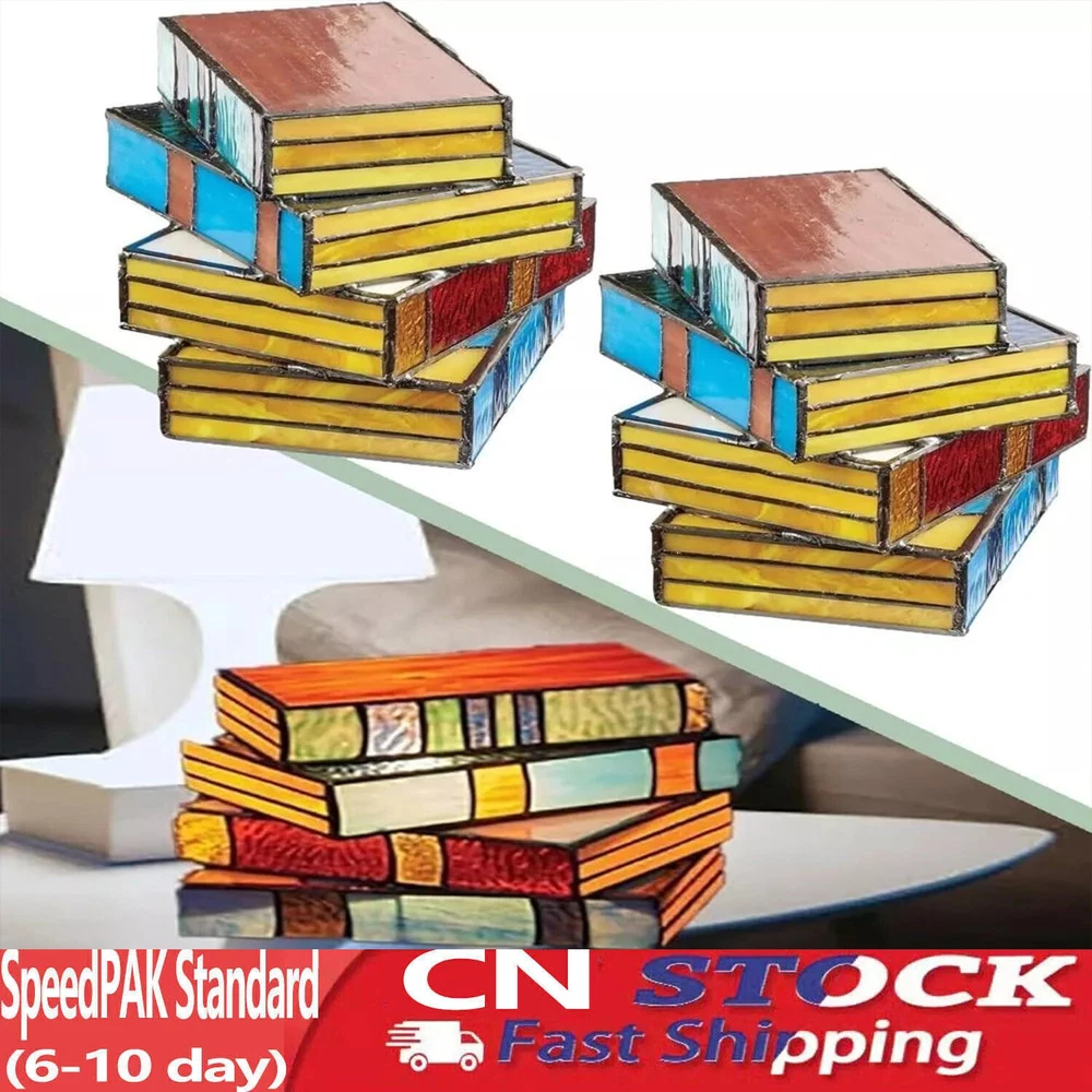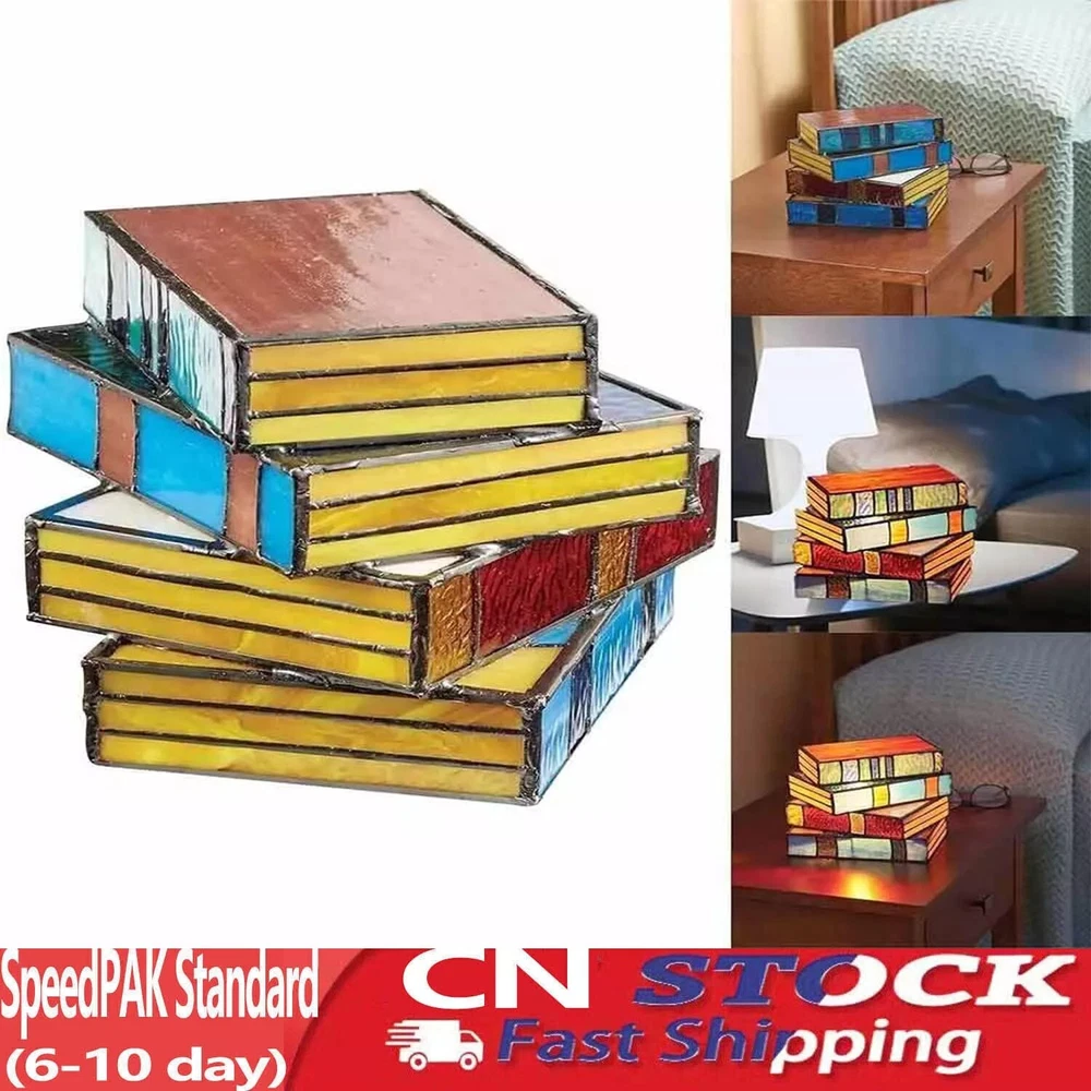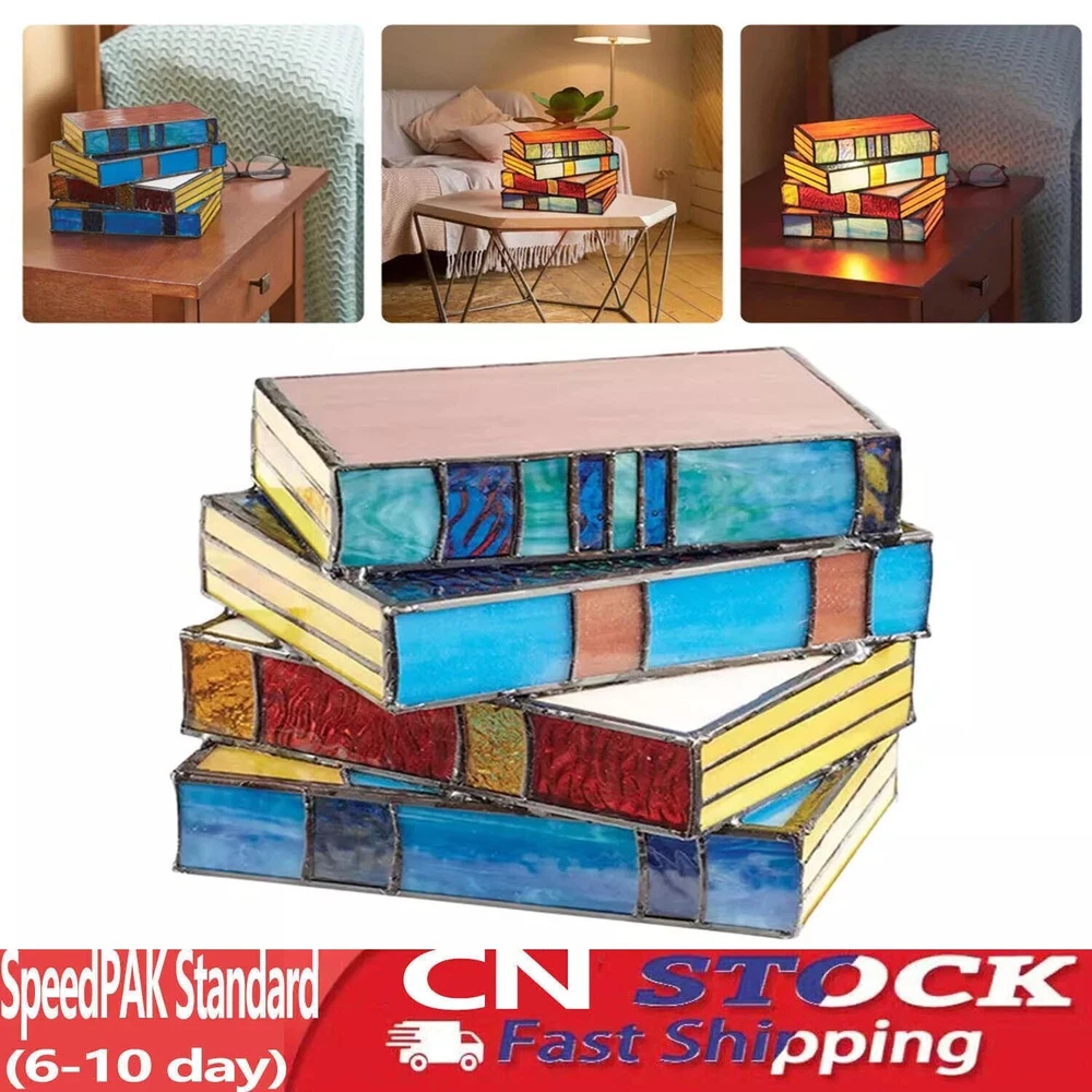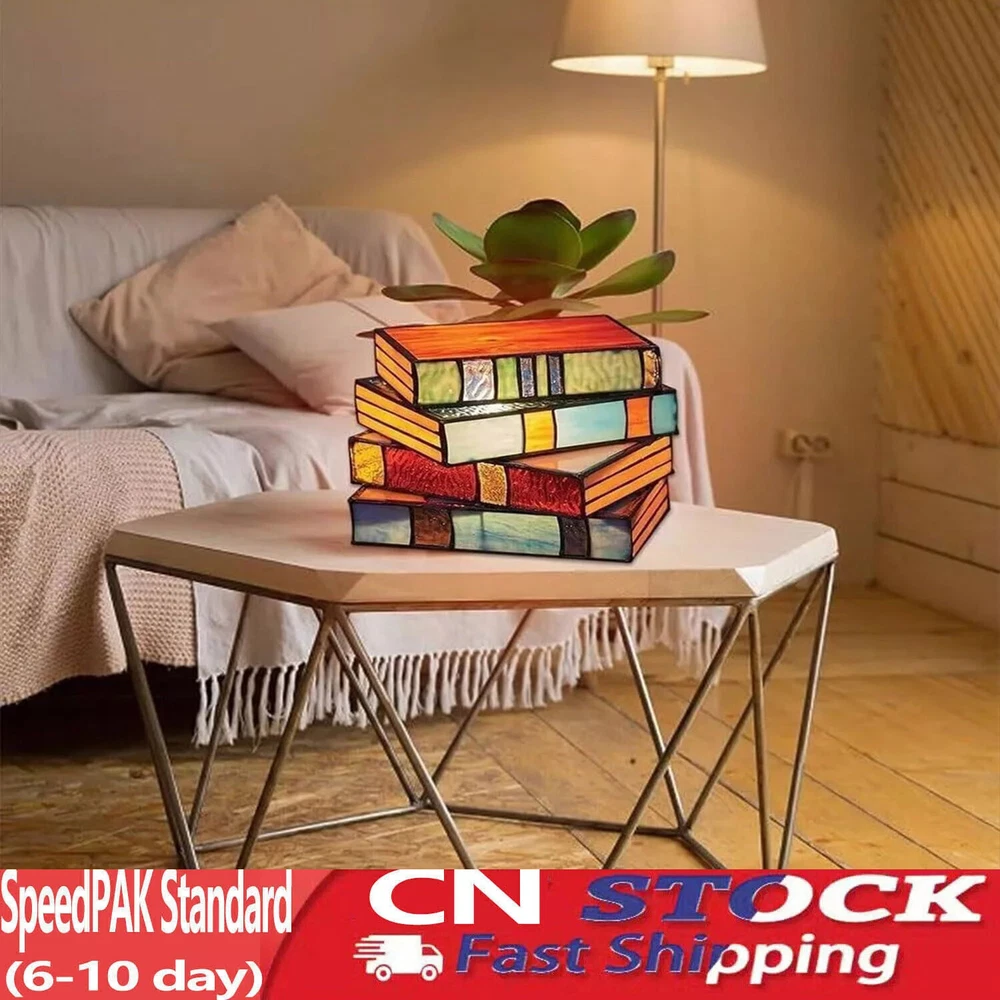 Stained Glass Stacked Books Lamp Tiffany Style Table Lamp Home Decor Book Lamps