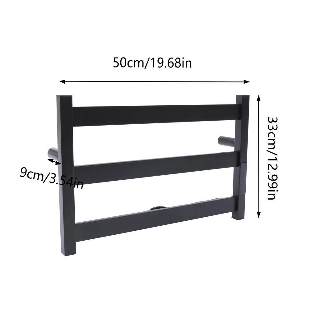 Electric Heated Towel Rack Warmer 3 Bars Stainless Steel Drying Rack Bathroom Description This heated towel rack is made of stainless ste el, which is durable and not easy to corrode. The surface is treated by electrostatic spraying, which will not leak electricity, bringing you the ultimate enjoyme nt. It has the function of fast drying, sweeping away the moisture on rainy days, and can take care of the health of you and your family. It's like the warmth your mother brings to you. Key Features Great Durability: The heated towel rack is made of stainless steel with faster and more uniform heat conduction, which is mild and non-scalding. It s surface is treated with high-temperature baking paint to make it anti-wear , anti-rust , and more durable. High Load Capacity: This heated towel rack is very sturdy, with a load capacity of 30kg/66 lbs. So it can hang most of the towels as well as clothes. Large Space: This item has 3 rods so that it makes full use of the vertical space and provides plenty of room for items. This vertical hanging design makes it possible to hang more towels and clothes. Timing Function: This heated towel rack can be set for 1-8 hours of timing service, thoughtful and intelligent. If you hang up your clothes to warm them before the shower, you can wear warm and comfortable clothes after showering. Friendly Design: The distance of this towel rack from the wall can facilitate the insertion of the rear socket and it can avoid towels, clothing contact with the wall, and the moisture, which protects the clothing. Widely Used: This heated towel rack can be used in every day and wet weather to dry the whole family bath towels dehumidification sterilization , but also drying underwear, to avoid the embarrassment of drying balconies. High Security : The surface of this heated towel rack is treated with electrostatic spraying and has IPX4 waterproof grade. Even if there is water on the surface, you do not have to worry about electrocution, use it with confidence. New Heating Technology : This product uses carbon fiber heating technology, more energy efficient and more stable heating than the traditional water injection heating method. Temperature Control: This heated towel rack can be adjusted to six temperatures 45/50/55/60/65/70℃, which is intimate and intelligent, giving you an exclusive and comfortable temperature. Warm and Enjoyable: With this heated towel rack your towels will be toasty warm in winter. Let you experience the feeling of a warm towel like a spa. Wall-mounted Design: This heated towel rack features a wall-mounted design that saves you space in your bathroom. Good Visual Design : The design of this heated towel rack is simple but very advanced. And the black rack is suitable for most rooms. Putting it in the bathroom or elsewhere will make the room look prettier. Easy Installation: The simple structure and design make the rack easy for you to install. And it comes with accessories for installation, so you can do the installation by yourself independently according to the instructions . Guaranteed Customer Service: We aim to provide quality products and services. If you have any problems, please feel free to contact us. We will reply and solve the problem for you as soon as possible. Details Touch Screen Control: The display of this heated towel rack is mounted on the surface of the towel rack no additional remote control is needed, you just need to touch the screen to set the temperature and timing time you want to heat. Rounded Edges: These rounded edges can protect your or your family's head from injury due to accidentally hitting the edges. Long Power Cord: This product is equipped with a 4.92ft long power cord, so you don't have to worry about an outlet being too far away. Application This heated towel rack can be suitable for hanging some items in many places, such as bathrooms, bedrooms, hotels, balconies, yards, etc. Specification Color: Black Style: Minimalism Material: Stainless Steel Waterproof Grade: IPX4 Heating Method: Carbon Fiber Surface Treatment: Electrostatic Spraying Installation Technology: Wall-mounted Perforated Timing Period: 1~8 hours Weight Capacity: 30kg/66lbs Power: 200w Gross Weight: 1.9kg/4.19lbs Net Weight: 1.46kg/3.22lbs Power Cord Length: 1.5m/4.92inch Product Size: 50*9*33cm/19.68*3.54*12.99inch Package Size: 35*56*11cm/13.78*22.05*4.33inch Temperature Control: 45℃-70℃ Package Included 1* Heated Towel Rack 1* Chinese Manual All Accessories for Assembly Notes Please allow the slight color difference caused by the shooting light and 1-3 cm error due to manual measurement, and make sure you do not mind before ordering. Payment Delivery details Terms of sales About us Contact us Payment We accept ebay payment 。 Fees such as import duties, taxes are not included in the item price or shipping costs. These charges are the buyer's responsibility. Delivery details Shipping: 2-9 working days to: USA Terms of sales We maintain high standards of excellence and strive for hundred percent customer satisfaction. Feedback is very important to us. We hope that you contact us immediately before you give neutral or negative feedback, so that we can address your concerns. It is impossible to address issues if we do not know about them! About us Your satis faction is our ultimate goal. We work hard to earn your trust and future business. Our certified technicians have tested each item before shipping. The unit comes with 1 year limited warranty on all manufacturing defects. a) If you receive a defective item, you may return it or ask for a discount. Please contact us within 14 days after you receive the package. b) What you returned must be intact and in its original packaging as re? u. Customer is responsible for shipping costs of the returned item. c) We will cover the cost of shipping back t with the shipping rate indicated in the registration page. We will send you a new unit or refund the full payment you paid. Thank you. Contact us B