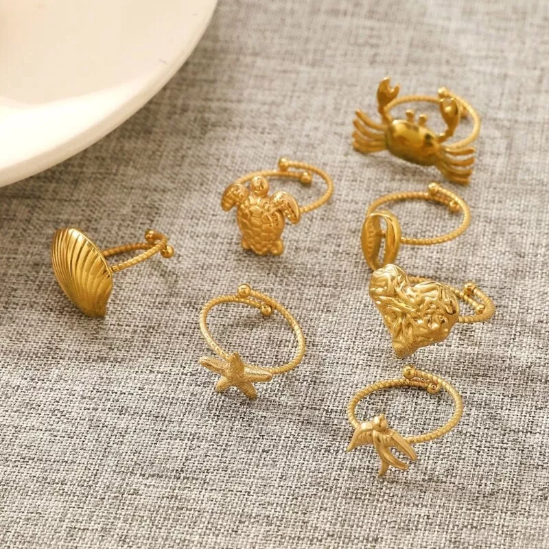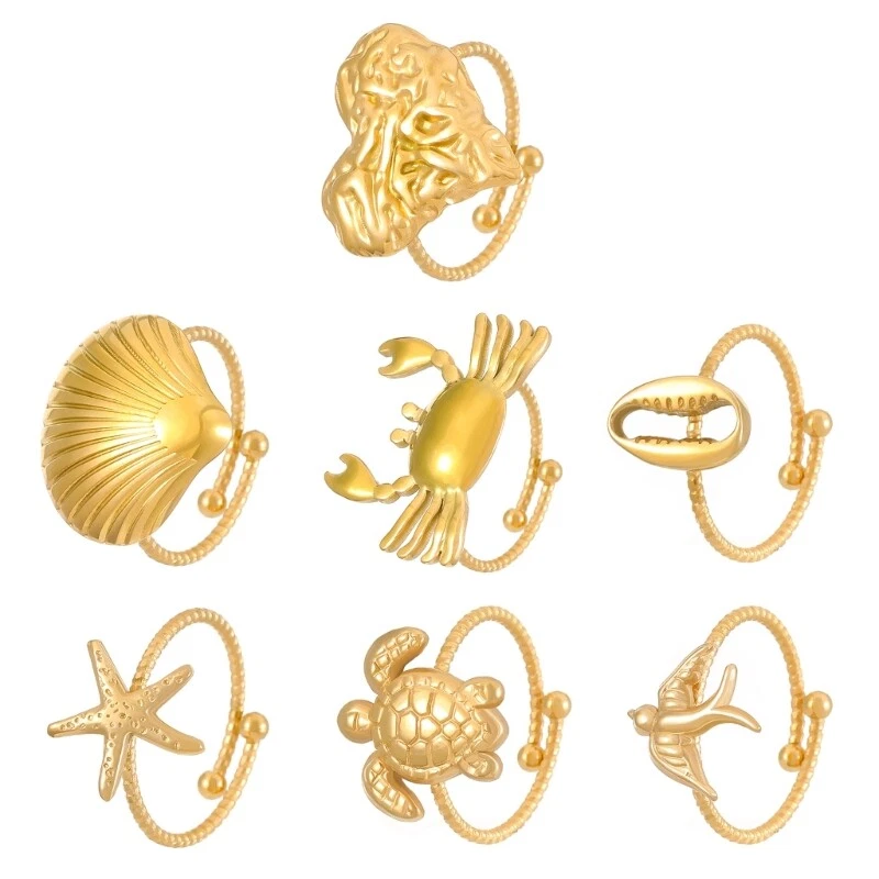 Stainless Steel Animal Themed Rings Collection Set of 7 Unisex Accessories Features: With this set of 7 stainless steel animal rings each featuring a unique designed that's sure to turn heads. Crafted from stainless steel, these rings boast durability and a resistance to tarnishing, complemented by a smooth for comfortable wear. for trendy individuals, both men and women who love to expressing their personality through unique jewelry pieces. Whether it's for casual outings, themed parties, or romance dates, these versatile animal rings add sophistication and styles to any outfit. Gifts these charm rings to friend or family as a thoughtful present, or expand your own jewelry collection with these trendy and stylish animal themed accessories. Specifications: Component: Stainless Steel Color: Gold Size: Diameter 1.7cm/0.67inch Package Includes: 7pcs Stainless Steel Rings note: 1.Please allow 1-2cm errors due to manual measurement, making sure that you will not mind before order. 2.Due to the differences between different monitors, the picture may not reflect the actual color.