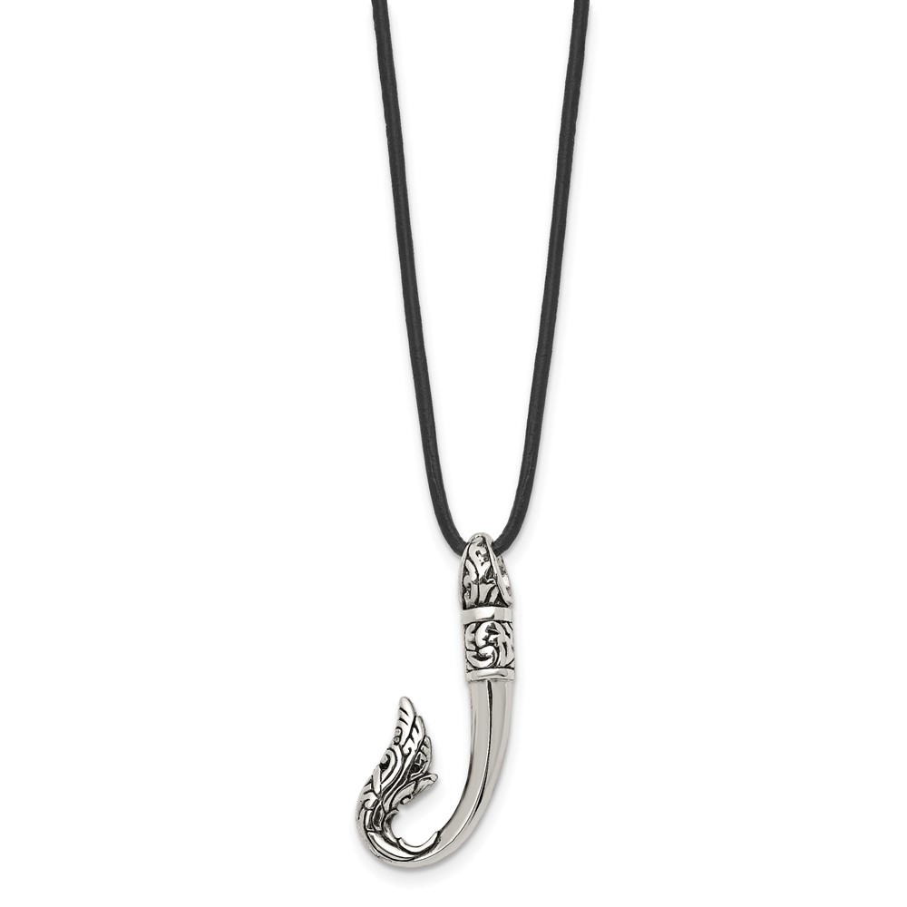 Finish:Polished & Antiqued|Length of Item:20 in|Chain Length:20 in|Chain Type:Cord|Chain Width:1.75 mm|Charm/Element Length:36.63 mm|Charm/Element Width:17.05 mm|Clasp /Connector:Lobster|Material: Primary:Stainless Steel|Item Weight U/M:gm|Width of Item:17.05 mm|Packaging:Gift Boxed|Product Type:Jewelry|Jewelry Type:Necklaces|Sold By Unit:Each|Necklace Type:Necklace with Pendants|Pendant/Charm Type:Themed|Gender:Men's|Material: Primary - Color:White|Material: Chain Only:Leather All weights and measurements are approximate and may vary slightly from the listed information. Welcome to diamond_6720 Payments We accept all Ebay approved payment. Please sent the payment to us within 8 days after the auction has ended, or you will have unpaid case auto open by eBay. Shipping Policy We will ship all items within 1 business days of purchase during the work week (M-F) excluding holidays. If you order on Friday, your order will be shipped the following business day. Tracking will be provided when it becomes available. We will only ship to a PayPal Verified Address. Please make sure your address is current and correct. If the information does not match, your order may be canceled. Buyers are responsible for all customs, duties and taxes for your respective countries. Delivery times for International Shipping will vary. California Buyers Pay 9.0% Tax on all orders. case auto open by eBay. Return Policy & Exchange Returns or Exchange are accepted. Buyer must contact us within 30 days after the item is received. Item must be returned in unworn and resalable condition. We will only issue a refund for the purchase price, excluding any shipping fees. If we are at fault, we will provide a full refund. Buyer is responsible for all return shipping costs. BUYERS FEEDBACK If you have any concerns regarding your purchase, please contact us via eBay Message, we assure you that a satisfactory resolution will be reached. Your feedback is very important to us Do remember to give us 5 star rating(*****) if you are satisfied with our product & service .