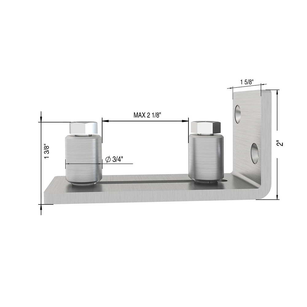 FLAT BOTTOM DESIGN - Flat bottom design allows door needn't grooved and do not destroy your beautiful floor.with door thick up to 2 1/8". PACKAGE INCLUDED- 1x floor guide; 2x screws; All necessary hardware is included. EASY TO USE - Mount to the wall with screws, and no groove required for door. By adjusting the position of the roller in the track to fit your door panel. No need to drill holes in the floor. FIT FOR DOOR-This 304 stainless steel roller floor guide with door thick up to 2 1/8". Quality Service: We are reliable and qualified manufacturer. Professional engineer team is dedicated to the sliding barn door hardware. Professional team help you solve all problems in time. We are always devoted to customer satisfaction!