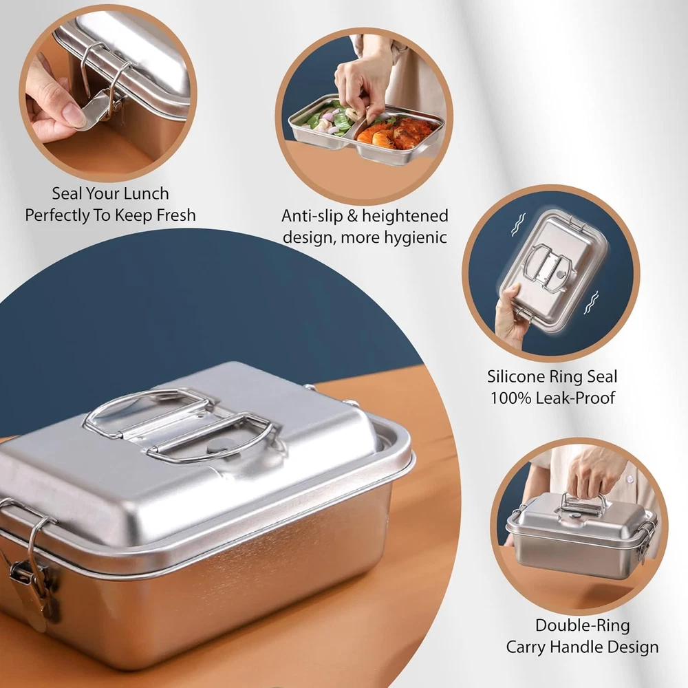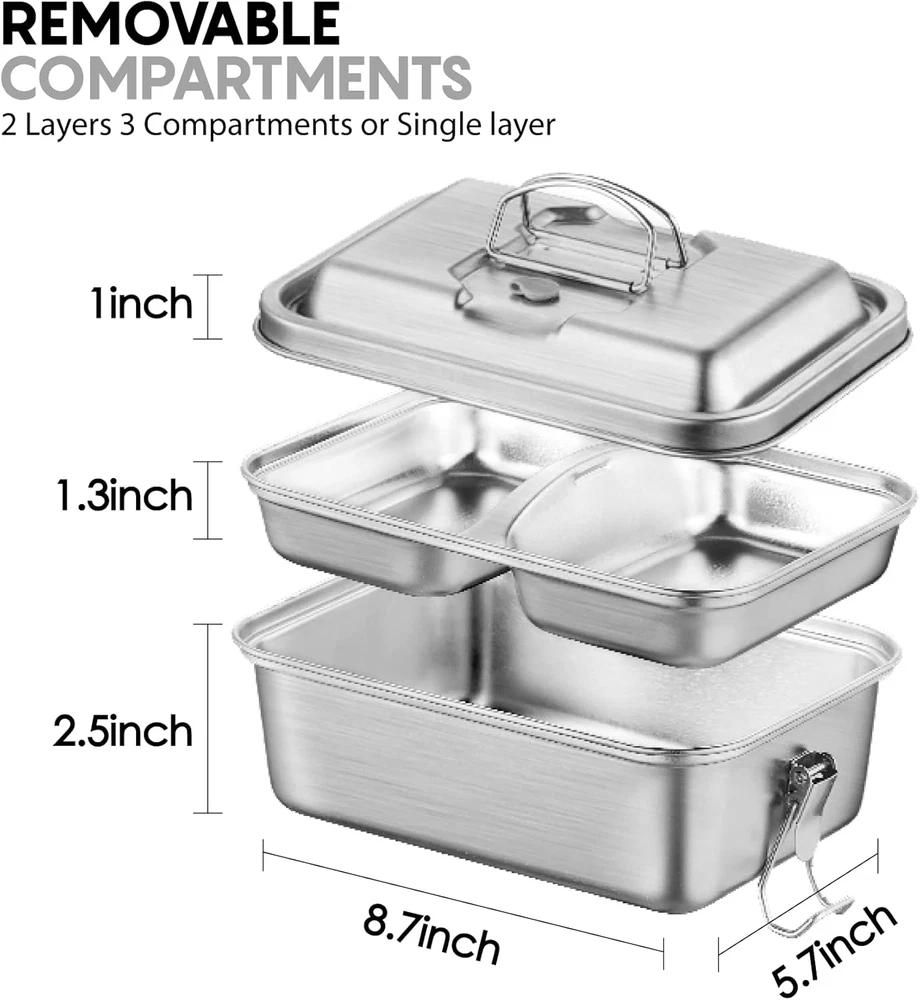 Store New Arrivals Add to Favorite View Feedback Contact Stainless Steel Bento Lunch Box for Adults with Secure Locks, 1800ML 3 Compartments 2 Layer Leak Proof Metal Insulated Lunch Food Containers Description Age Range Description Adult Capacity 1800 Milliliters Number of Items 2 Pattern Solid Material Type Stainless Steel Theme Food Number of Compartments 3 Material Stainless Steel Age Range (Description) Adult Additional Features Leak Resistant Material Type Free BPA Free Closure Type Snap Item Weight 1.5 Pounds Model FJB-12 Special Feature Leak Resistant Item Dimensions L x W x H 8.7"L x 5.7"W x 2.5"H Color Silver Shape Round Style Name Bento Recommended Uses For Product Office, Travel, Camping Included Components Lid Product Care Instructions Dishwasher Safe ✅【100% SAFE & DURABLE】Subron lunch boxes are made of high quality food grade 18/8 stainless steel, BPA-free, PVC-free and FDA compliant. Durable and non-cracking, will not rust, no odor, you and your family can enjoy delicious lunch every day without worry! ✅【1800ML LARGE CAPACITY & REASONABLE 3 PARTITIONS】Are you tired of metal lunch boxes that only hold a squashed sandwich and a few carrot sticks? Subron 1800ml stainless steel lunch box allows you to enjoy your meal to the fullest! Built-in double layer 3 partition to avoid food mixing, put in pasta, salad, meat and vegetables and fruits, which is 50% larger than most metal bento boxes. ✅【LEAK-PROOF & KEEP FOOD FRESH】This stainless steel metal lunch box features snap-secure locks and removable silicone seal that greatly enhances the seal to keep food fresh while ensuring no leaks or spills and can be conveniently carried in a lunch bag or backpack. Whether you are at office, travel, picnic or camping, this lightweight and easy to carry bento box can accompany you in multiple scenarios. ✅【EASY TO CARRY】The top has a handle design, as light as a plastic lunch box, but this stainless steel food containers is much harder than plastic ones, can be used for a long time, and does not contain any chemical ingredients, more healthy and environmentally friendly. ✅【PERFECT CHOICE FOR YOUR FOOD CONTAINER】Subron Stainless Steel Bento Box is a mobile food bank for adults, with a large capacity of over 7 cups, multiple partitions, high quality and classic design. And, we provide a warranty to make your purchase completely risk-free, let's join us in preparing a delicious lunch! Product Description Healthy Containers for Healthy Meals More Advantageous Than Plastic Lunch Boxes Bringing lunch to work or travel is very common, so it is vital for you to choose healthy food containers. Subron lunch boxes are made of 100% food grade 18/8 stainless steel, BPA free, PVC free, lead free and more. No chemicals can leach into your lunch, providing you with a safe, non-toxic product that you can enjoy your meal with peace of mind. 1.8L large capacity has 3 sections to keep food separate, and all-in-one design makes carrying more convenient and dining easier and faster. Far more durable than plastic lunch boxes, Subron stainless steel lunch boxes can last for decades without the hassle of paint peeling, cracking, deformation, or denting. This ITEM IS NOT INTENDED FOR USE BY CHILDREN 12 AND UNDER. Easy to carry You can easily take it to camping, office, picnic, and travel. Avoid burning your hands when holding hot food. Higher top, larger capacity 3 compartments allow for more reasonable food distribution and balanced nutrition. The middle compartment is removable. Secure locking clip When you put it in your bag and go out, you don't have to worry about the lid opening and spilling food because of shaking. Removable silicone seal Made of food-grade silicone. Excellent sealing ensures 100% leak-proof and maximizes freshness retention time. We love this healthy, harmless and classic material, and Subron have been insisting on creating high quality stainless steel household products since 2012. Unbreakable 18/8 (304) food-grade stainless steel. Anti-rust, anti-stain, odor-free material, dishwasher safe. Does this have a good seal? Yes, Subron bento boxes are made of high quality food-grade silicone seals with security locking clips to be 100% leak-proof and have a perfect seal. Is this going to rust? Totally unlikely to happen. Material is 18/8 (304) food-grade thickened stainless steel, not only does not rust, and not easy to deformation and rupture, very durable. Dishwasher safe. Is this too big for office worker? This is suitable for adults. The stainless steel material is safer for food than plastic, and the 1.8L 3-division compartment allows for a reasonably nutritious lunch for adults. Does the lunch box work properly after the middle compartment is removed? Yes, this lunchbox is very flexible, keeping the compartment will have 3 food compartments and removing the compartment will give you a very large single space for food. CUSTOMER VOICE The video showcases the product in use. The video guides you through product setup. The video compares multiple products. The video shows the product being unpacked. ABOUT US We offer the best prices around on high quality products. Our E-store includes media such as books, movies, music and games while offering electronics, toys, sporting apparel, clothing, tools, general home, garden items and more. SHIPPING We are always working hard to ensure your package arrives as soon as possible. Please understand that some factors like weather, high postal traffic, and the performance of shipping companies are outside of our control. We offer free shipping to the lower 48 states and ship within 2 business days of payment, usually sooner. We do not accept P.O. Boxes. Please provide a physical address. For shipping outside of the continental USA, we only use eBay's Global Shipping Program.The item is shipped to KY and then sent to the rest of the world. International customers are responsible for all duties and taxes. Continue to check out in orde