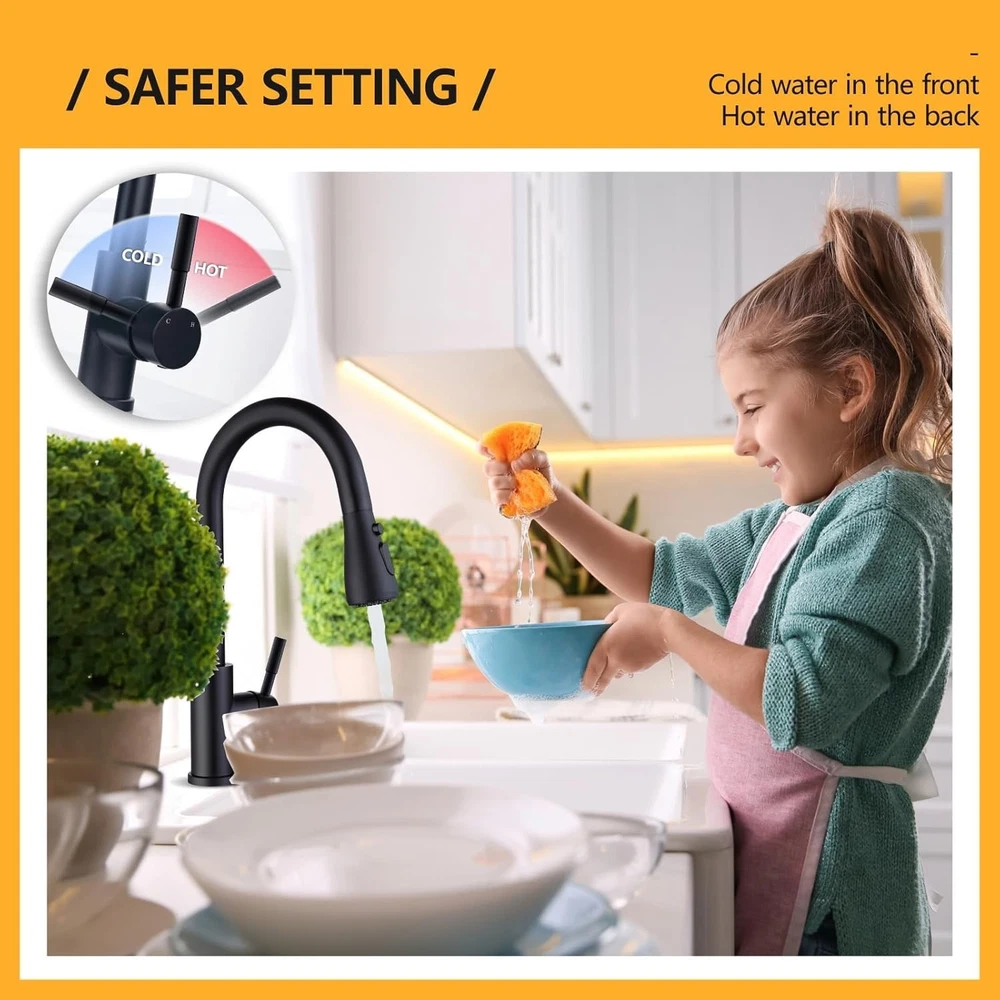 Black Stainless Steel Waterfall Kitchen Faucet with Pull Down Sprayer