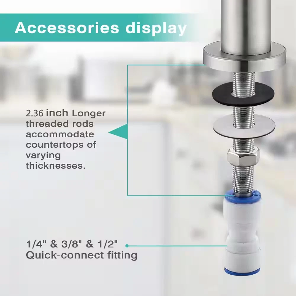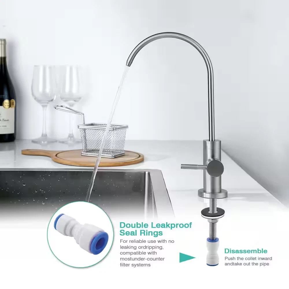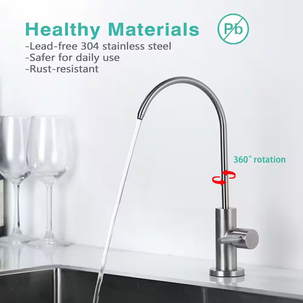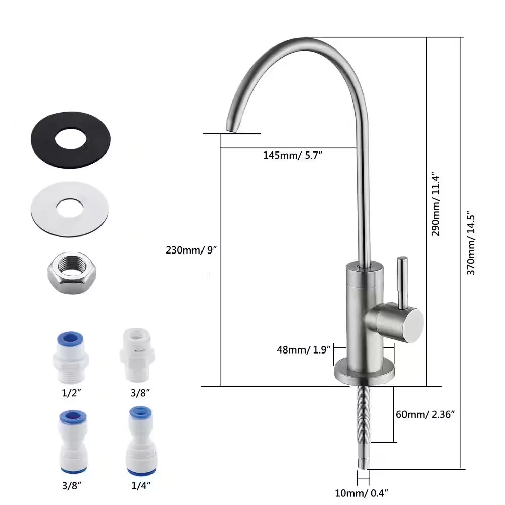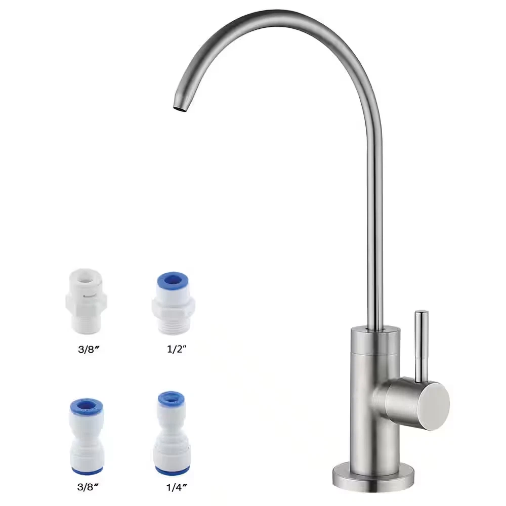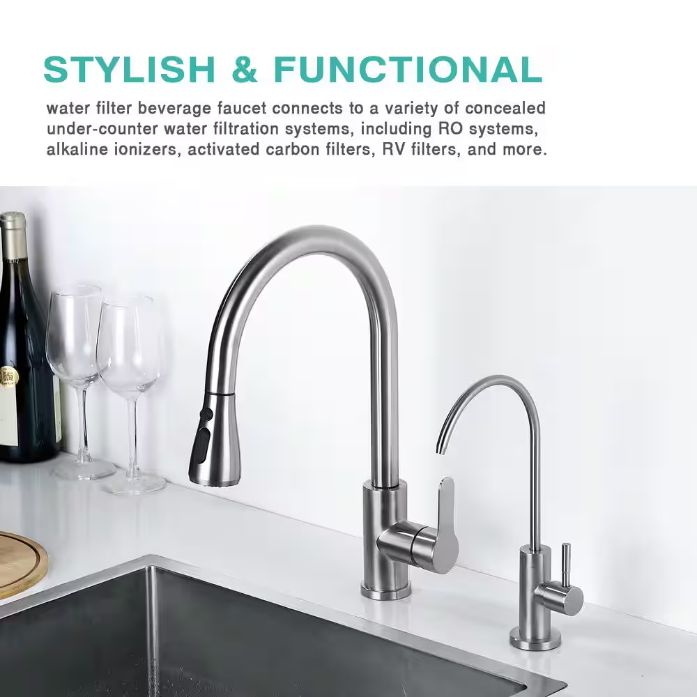 Fast Shipping On All Items 30 Days Money Guarantee Customer Support Excellent Service 100% Satisfaction Satisfaction Guaranteed Lead-Free Single Handle Beverage Faucet in Stainless Steel Brushed Nickel Specification Color Family Stainless Steel Color/Finish Brushed Nickel Faucet Height (in) 11.4 in Faucet Type Beverage Faucet Features 360 Degree Swivel,Adjustable Angle,Adjustable Flow Rate,Ceramic Disc Valves,Corrosion Resistant,Drip Free,Easy to Install,Gooseneck,High Pressure,Low Lead,Reverse Osmosis Compatible,Spot Resistant,Swivel Faucet,Tamper Resistant,Tarnish Resistant,Touch On,Vandal Resistant,Waterfall Included Components All Mounting Hardware,Deck Plate,Faucet Adaptor,Single Handle Faucet Number of Faucet Handles 1 Handle Returnable 90-Day Water Treatment Type Counter Top Water Filter Replacements,Counter Top Water Filter Systems,Drinking Fountain Filter Replacements,Drinking Fountains,Reverse Osmosis Systems,Water Softener Systems Certifications and Listings ADA Compliant,CE Certified,IAPMO Certified,ISO Certified,NSF Listed,UL Certified Manufacturer Warranty 1 year 11.4 inches. Item Description 100% lead-free Beverage Faucet with high-end ceramic cartridge Perfect match for kitchen faucets, modern style decor Extended mounting rods fit various countertop thicknesses Kitchen Water Filter Faucet, 100% Lead-Free Drinking Water Faucet. Fits most Reverse Osmosis Units or Water Filtration System in Non-Air Gap.Stainless Steel 304 Body Brushed Nickel Finish About us We offer the best prices around on high quality products. Our E-store includes media such as books, movies, music and games while offering electronics, toys, sporting apparel, clothing, tools, general home, garden items and more. Shipping We are always working hard to ensure your package arrives as soon as possible. Please understand that some factors like weather, high postal traffic, and the performance of shipping companies are outside of our control. We offer free shipping to the lower 48 states and ship within 2-3 business days of payment, usually sooner. We do not accept P.O. Boxes. Please provide a physical address. For shipping outside of the continental USA, we only use eBay's Global Shipping Program.The item is shipped to KY and then sent to the rest of the world. International customers are responsible for all duties and taxes. Continue to check out to calculate costs for shipping the item to your country. Messages regarding eBay's Global Shipping Program MUST be directed at eBay EXCLUSIVELY. Returns We offer a 30-Day Return Policy on items in which you are not completely satisfied with. You have the option of a full-refund or an exchange of the item. No returns are available on items shipped outside of the USA Satisfaction We try over very best to make sure every customer is completely satisfied. If there's a problem, message us! We're happy to help. Payment Options Shop With Confidence