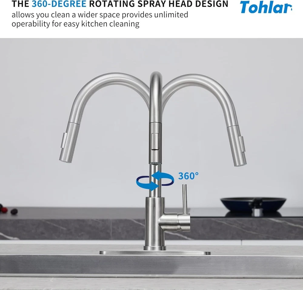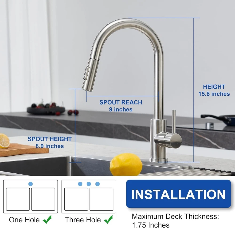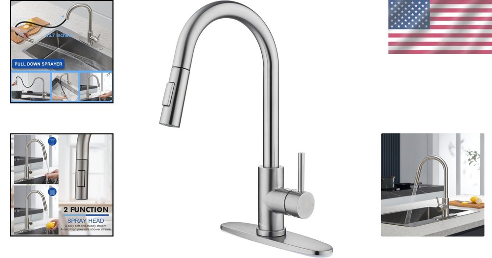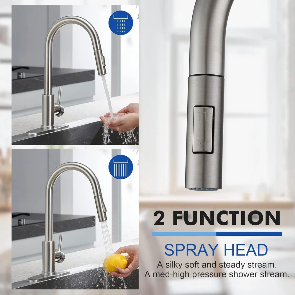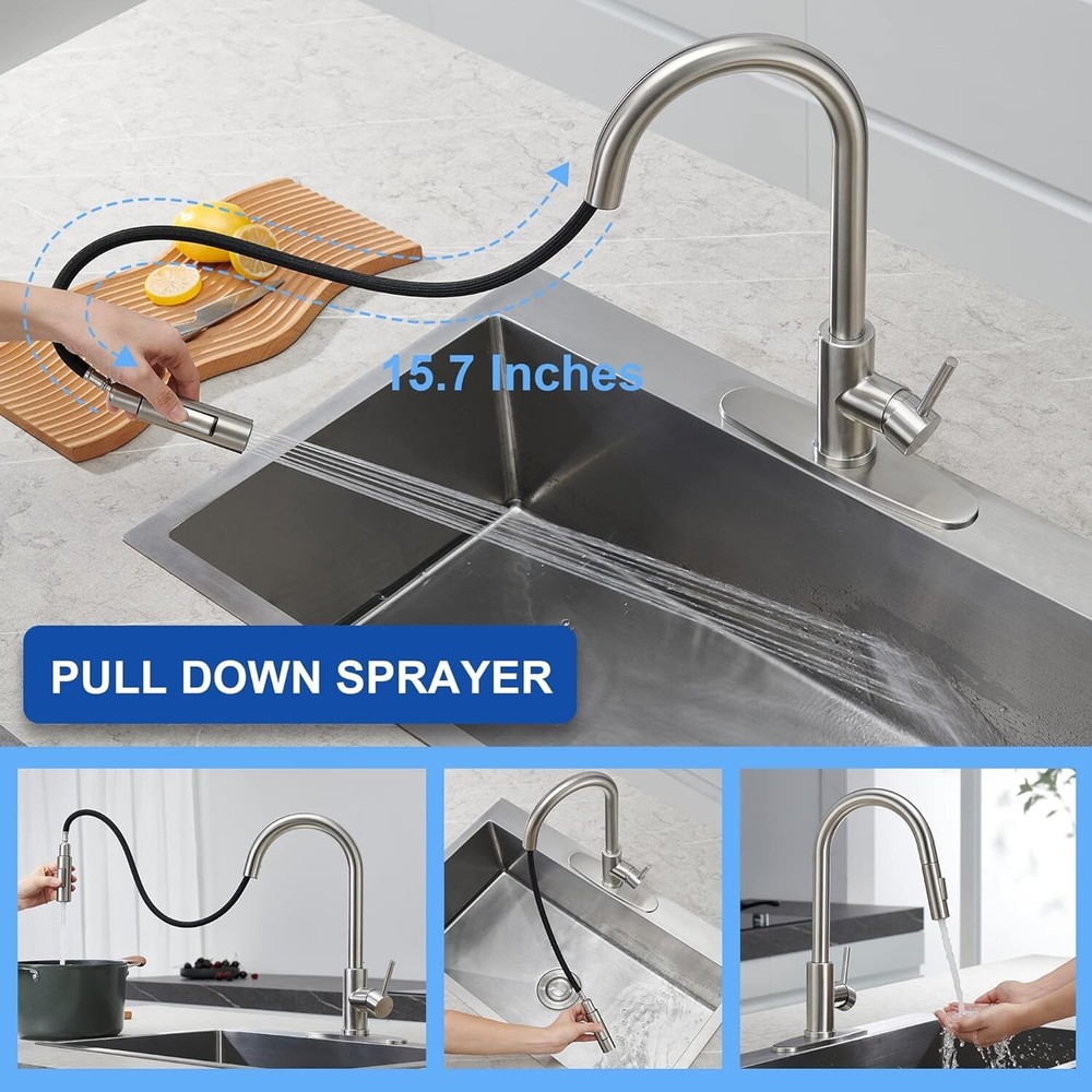 $ 25.33Kitchen Faucet Brushed Nickel Stainless Steel Pull Down Sprayer Modern Sink F...