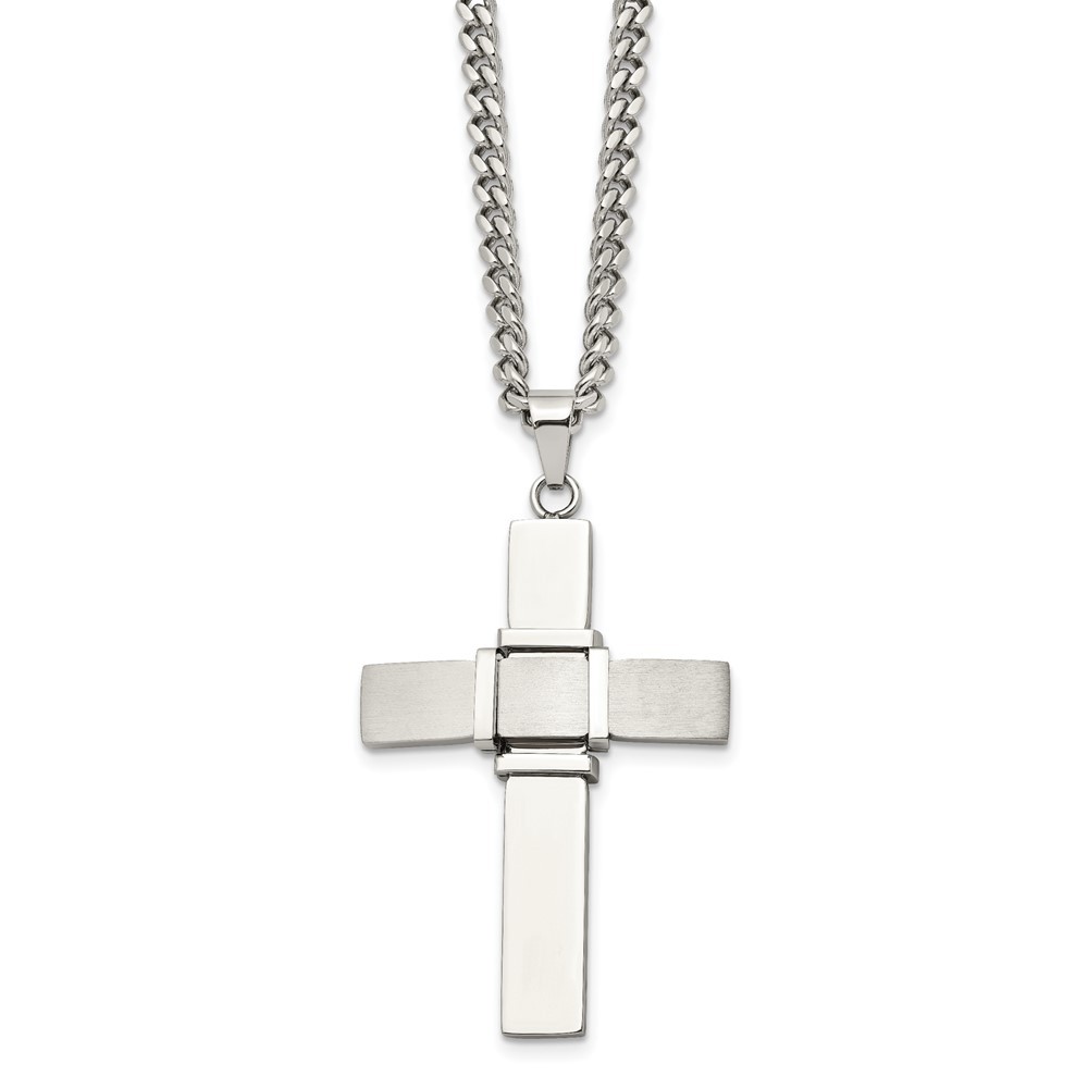 Stainless Steel Black IP-plated 2 Piece Cross Pendant Cable Chain Necklace 20"