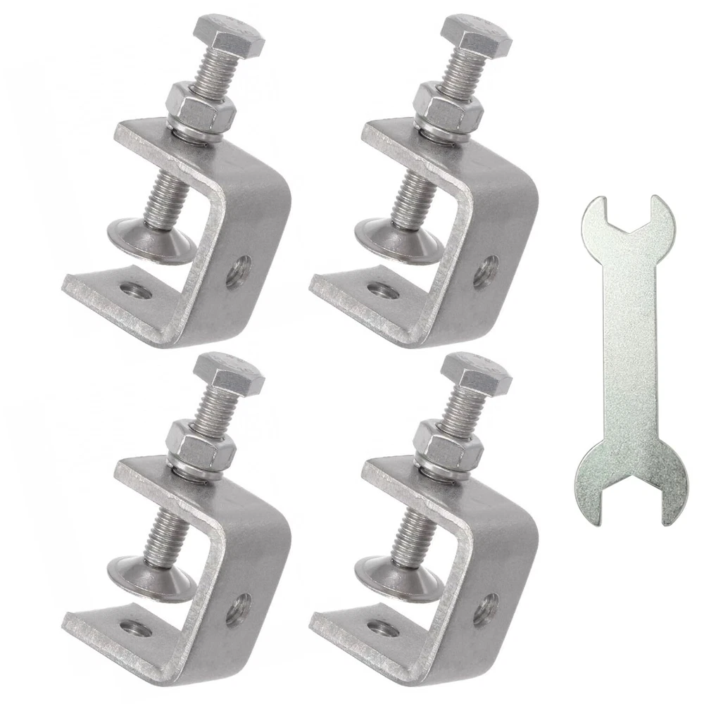 1. Made of 304 stainless steel, anti-rust and durable to use. 2. The I-beam design provides strength and stability. 3. Easy to use and can be adjusted as needed. 4. Used to hold together two workpieces by turning the screw, for assembly, fastening, gluing and welding. 5. Designed for woodworking, metalworking, assembly, construction and household clamping projects. Specification: Jaw Opening: 30mm / 1.18 inch Clamping Range: 0mm - 25mm / 0 inch - 0.98 inch Clamp Thickness: 5mm / 0.2 inch Thread Size: M8*1mm / 0.04 inch Clamp Size: 32mm x 24mm x 30mm / 1.26 inch x 0.94 inch x 1.18 inch (L*W*H) Package Content: 4 Pcs x C-Clamp 1 pc x Wrench Clamping Range - 0 ~ 25mm (0" ~ 0.98"). Durable to Use - Made of stainless steel, corrosion-resistant, rust-resistant, U clamps is 0.2 inches thick, strong and not easy to break. Easy installation - With adjustable positioning screws, the screws can be adjusted as needed, which is simple and convenient to use.(A matching wrench is provide for your convenience) Design - I-beam frame provides strength; Special clamping pads that apply pressure evenly and prevent damage when turning the screw. Widely Used - For general clamping needs, for assembly, fastening, bonding and welding in metalworking, designed for woodworker, welder, and construction worker.