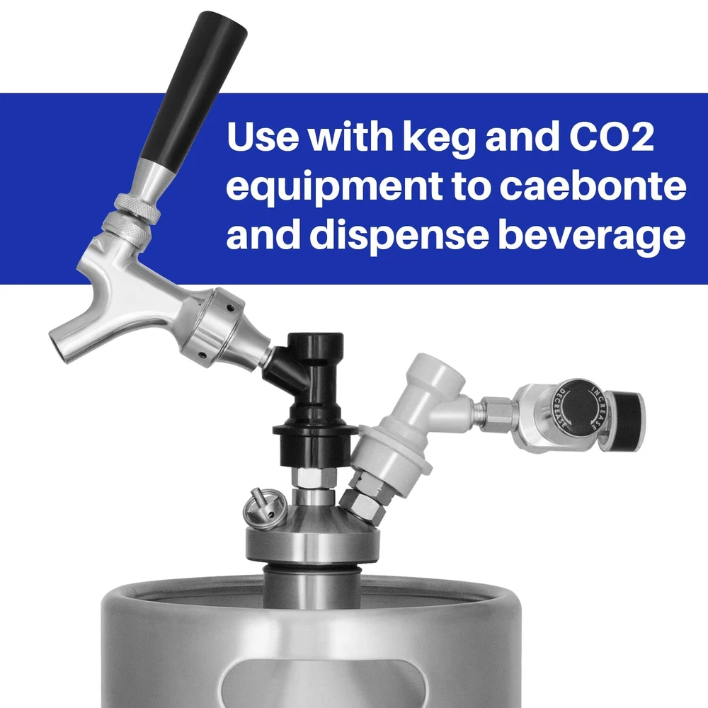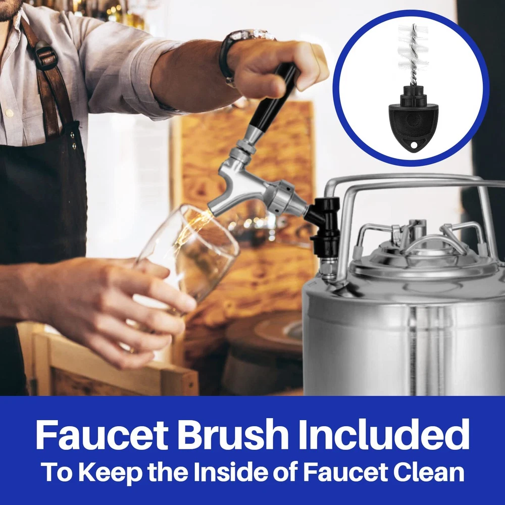This keg tap ball lock dispenser kit is to attach to the out of a beverage keg, plug and lock into the ball lock of keg’s out post, no beer line needed. PACKAGE 1* Beer Tap 1* Tap Brush 1* Tap Handle 1* Faucet Adapter 1* Black Liquid Ball Lock SS304 CORE:beer faucet is in a stainless steel core, solid, less susceptible to wear and tear, will not impart unwanted flavors. Lever, shaft are all made of ss 304, stronger against air corrosion. WIDELY USE: This beer faucet comes with a gas ball lock quick disconnect set, allow you can easily install on Cornelius key and tap your homebrew. FLEXIBLE FAUCET LEVER:The new faucet increases the resistance of the lever to prevent leakage and unexpected beer drops. And it is flexible to operate during use, not easy to stick, less agitation and foaming than brass. EASILY CLEAN: Faucet structure is simple and reasonable, easy to disassemble and make cleaning regularly, healthy stainless steel provides a second guarantee for keeping your beer faucet clean interior ONE YEAR WARRANTY: Message us 24/7 via Amazon for full support and service if you are not fully satisfied with our mini keg or it does not perform to your expectations