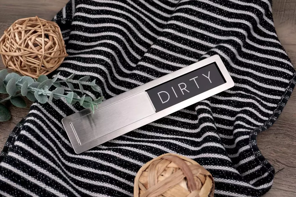 Dual Functionality: Clearly indicates whether dishes inside the dishwasher are clean or dirty with "Clean" and "Dirty" labels. Premium Material: Made of 304 stainless steel, known for its corrosion resistance, making it ideal for kitchen environments with frequent water exposure. Perfect Size: Measures 7.125 by 1.625 inches, ensuring easy readability without occupying too much space. User-Friendly Design: Features a steel sliding door with raised handles for effortless switching between "Clean" and "Dirty" indicators. Simple & Minimal: "Clean" side features a white background, and "Dirty" side has a black background for clear differentiation. Minimalistic Design: The words "Clean" and "Dirty" are in a minimalistic typeface, blending seamlessly with any kitchen decor. Durable Construction: High-quality metal build ensures long-lasting use without wear and tear. Perfect Gift: Comes with 2 double-sided sticker adhesives for non magnetic surfaces packaged in a giftable box. Product Description FridayVibez Premium Stainless Steel Clean/Dirty Dishwasher Magnet The video showcases the product in use. The video guides you through product setup. The video compares multiple products. The video shows the product being unpacked. The answer is clear. Sleek & Modern Like It Came With Your Dishwasher Upgrade your kitchen with our sleek and functional stainless steel. This innovative magnet clearly indicates whether your dishes are clean or dirty, making household chores more efficient. Crafted from premium 304 stainless steel, this magnet is designed to withstand the rigors of a busy kitchen, offering superior resistance to corrosion and water damage. Crafted from 304 Grade Steel Minimalistic Design and User-Friendly Its user-friendly design features a steel sliding door with raised handles, allowing you to effortlessly switch between the "Clean" and "Dirty" indicators. Both sides boast a very minimalistic touch, harmonizing with the entire stainless steel casing for a modern and sophisticated look. The edges of the magnet are smooth and safe, making it ideal for households with children, as it won’t cut their fingers during use. Magnetic Surfaces Or Not Compatible with appliances that look like metal... but aren't. The package includes two adhesive tapes for non-magnetic dishwasher doors, allowing you to easily attach the Stainless Steel Dishwasher Magnet. Just apply the tape to the back of the magnet and press it firmly onto the dishwasher door. These tapes let you enjoy the sleek look of our Stainless Steel Dishwasher Magnet on any type of dishwasher. Easy to Read, Loud & Clear Minimal font that can be read easily. Measuring 7.125 by 1.625 inches, this dishwasher magnet is perfectly sized for easy readability without being obtrusive. The minimalistic typeface used for the "Clean" and "Dirty" labels ensures that this magnet will complement any kitchen decor. Whether your style is contemporary or classic, this dishwasher magnet will seamlessly blend in, adding a touch of elegance to your appliances. Check Out Our Premium Styles! Add to Cart Add to Cart Add to Cart Add to Cart Customer Reviews 4.9 out of 5 stars 377 4.9 out of 5 stars 377 4.9 out of 5 stars 377 4.9 out of 5 stars 1,436 Price $16.99 $ 16 . 99 $16.99 $ 16 . 99 $16.99 $ 16 . 99 $9.99 $ 9 . 99 Trendy Design ✔ ✔ ✔ ✔ Includes Adhesives ✔ ✔ ✔ ✔ Super Strong Magnet ✔ ✔ ✔ ✔ Premium Quality ✔ ✔ ✔ ✔ Trusted US Brand ✔ ✔ ✔ ✔