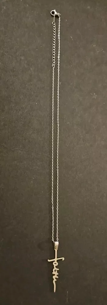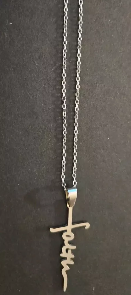 This beautiful stainless steel necklace features a cross pendant with the word "faith" engraved on it. The pendant is 18 inches in length and is hung on a lobster clasp chain also 18 inches in length. The necklace is nickel-free and available in a variety of colors including gold, silver, black, and rose gold. The necklace is perfect for a variety of occasions including anniversaries, birthdays, and christenings. It is an excellent gift for Christian believers who cherish their faith. The pendant is a charm type and the necklace is a pendant style. It is made of high-quality stainless steel and has an excellent cut grade. Get this beautiful necklace as a gift for your loved ones or treat yourself to it.
