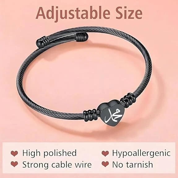 Stainless Steel Heart Bracelet Engraved Charm Bracelet for Women Black