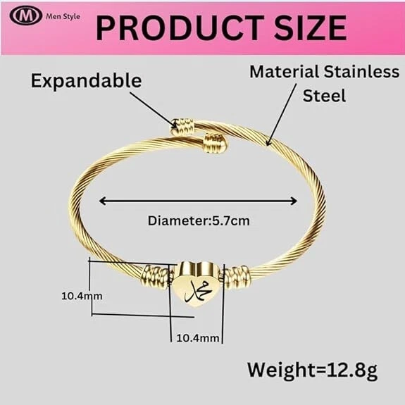 Elegant but cute bangle bracelet with heart charm, fashionable and perfect to bright up your overall outfit. This romantic heart design with adjustable size feature will make it great mother gift and best friend bracelet. Customizable: We can engrave some words on the heart charm for you. Size:The Letter Cuff Initial Bangle Bracelet is Expandable,You can use a soft ruler to measure the circumference of your wrist or ankle so that you can choose the product that suits you. Material: Alphabet Cuff Letter Initial Bangle Bracelet jewelry is made of high quality stainless steel which is 100% safe for sensitive skin ,and it has been electroplated so it will not fade,tarnish,rust or stain. This beautiful Letter Initial Alphabet cuff bangle bracelet can be as a fashion gift for mother or father or grandfather or grandmother or brother or sister or wife or husband or daughter or son and other loved ones.This charming anklet jewelry is suitable for all occasions, all kinds of anniversaries and all people like women,men,boys,girls,adults,elder people or children.For different people,it has different meanings and expresses different feeling. Packaging: We will carefully package the product, you don't have to worry about the jewelry charm being damaged. After-sales service: We sincerely serve you, if you have any other questions, you can contact us at any time, we are happy to serve you.