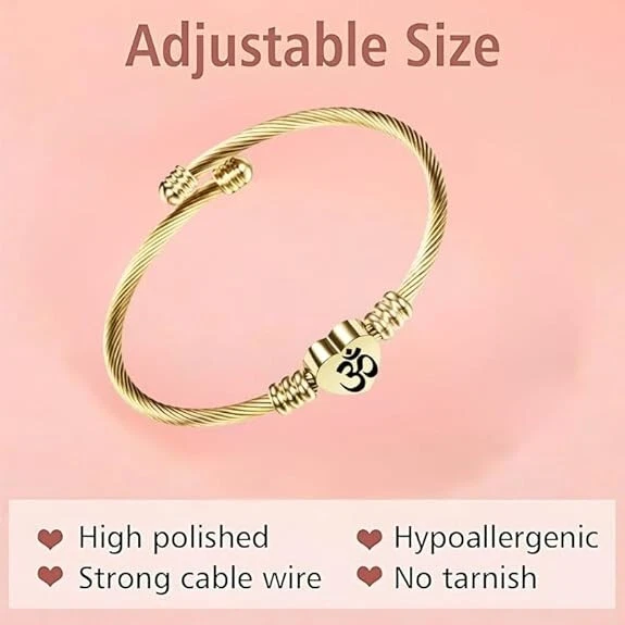 Stainless Steel Heart Om Bracelet Engraved Charm Bracelet for Women Golden
