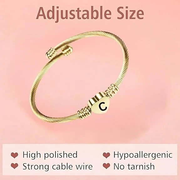 Stainless Steel Heart Word-C Bracelet Engraved Charm Bracelet for Women Golden