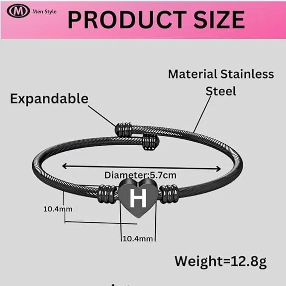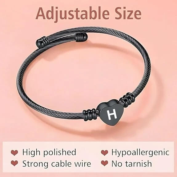 Stainless Steel Heart Word-H Bracelet Engraved Charm Bracelet for Women Black