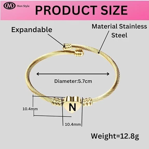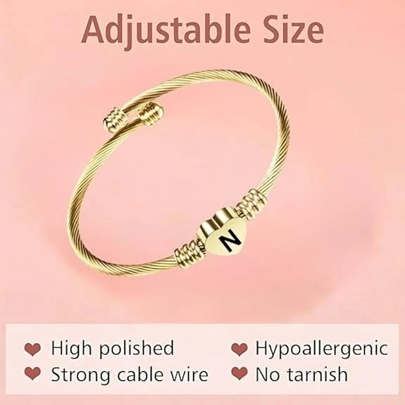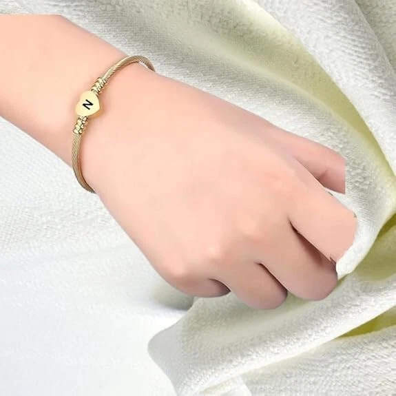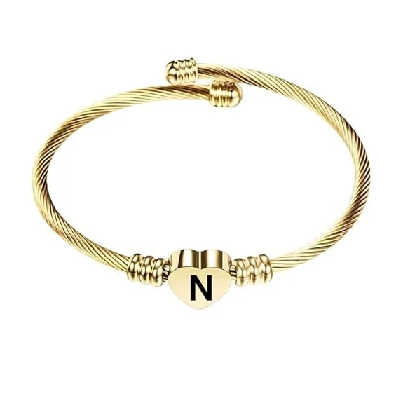Stainless Steel Heart Word-N Bracelet Engraved Charm Bracelet for Women Golden