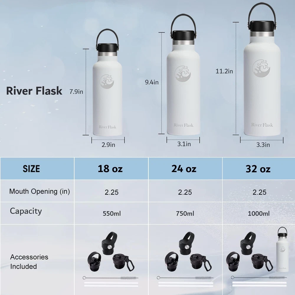Store New Arrivals Add to Favorite View Feedback Contact Stainless Steel Insulated Water Bottle with 3 Lids,2 Straws,1 Straw Brush,Hot & Cold, Double-Wall Vacuum Insulation, Leak Proof, Bpa-Free Flask for Sports, Travel, Gym (White, 32 Oz) Description Age Range Description Adult Capacity 32 Fluid Ounces Number of Items 1 Color White Is the item dishwasher safe? Yes Material Type Stainless Steel Global Trade Identification Number 05419980408631 Theme Travel, School, Sport, Work, Outdoor With Lid Yes Model Name RF Standard Mouth Straw Recommended Uses For Product Hot & Cold Beverages (Coffee,Tea,Soup,Smoothies,Milkshakes,Water etc.) Item Dimensions W x H 1.18"W x 11.2"H Included Components Water Bottle , 3 Different Lids , 2 Straws, 1 Straw Brush Special Feature function(f) {var _np=(window.P._namespace("DetailPageProductOverviewTemplatesJava"));if(_np.guardFatal){_np.guardFatal(f)(_np);}else{f(_np);}}(function(P) { P.when('A').execute(function(A){ A.on('a:truncate:po-attribute-truncate-4:updated', function(data) { var isTruncated = !data.truncateInstance.getIfTextFits(); var seeMoreElement = document.getElementById('po-attribute-see-more-id-4'); if(seeMoreElement) { seeMoreElement.style.display = isTruncated ? '' : 'none'; } }) }); })); Leak Proof, Double Wall, BPA-Free, Sweat Resistant, Cold 24 Hours & Hot 12 Hours, Dishwasher Safe, 3 Types of Lids, Carrying Loop, Eco Friendly See more Special Features Leak Proof, Double Wall, BPA-Free, Sweat Resistant, Cold 24 Hours & Hot 12 Hours, Dishwasher Safe, 3 Types of Lids, Carrying Loop, Eco Friendly Product Care Instructions Dishwasher Safe Size 32 Oz β ππ/π πππππππ πππππππππ πππππ: The River Flask is made of food-grade 18/8 stainless steel that is BPA-free and non-toxic. It will never leave a metal taste or rust, the double walled insulated bottle keep your drinks hot for 12 hours and cold for 24 hours. Fill up your bottle with your favorite ice cold beverage and feel refreshed all day! β π πππ π πππππ πππππ ππππ: Our drinking insulated water bottle comes with 3 individual lids, 2 straws, 1 Straw cleaning brush to serve all your needs. The two straw lids for cold beverages, and the removable wide mouth lid for drinks containing ice or fruit. All lids are BPA-free, leak-proof, and dust-proof, catering to your needs. β πππππ-πππππ & πππππππ ππππππ: This wide mouth water bottle is made to resist odors and stains, maintaining the freshness and cleanliness of the reusable water bottle over time. The metal thermos exterior is designed to resist condensation, ensuring that the outside of the bottle remains dry and easy to handle. β ππππππππ & ππππ πππππππ: The metal water bottle comes in various sizes, including 18 oz, 24oz, and 32 oz, with a range of colors to choose from according to your need. All sizes water bottles fit most cup holders. The insulated sports water bottle is ideal for outdoor activities, bike rides, camping trips, the gym, work, or indoor use. Carry this water bottle with you wherever you go and stay hydrated all day. It's safe in backpacks, beach bags, or on the edge of your countertop. Plus, it's dishwasher safe for easy cleaning. β ππππππ πππππππ πππ πππ-π πππππππ: Your purchase supports Rivers Projects all over the World. River Flask is a mission driven brand that provides environmental conscience products to drive change in less fortunate areas of the World. Make the switch from plastic to River Flask stainless-steel insulated reusable water bottle and protect the environment and your health. β πππ% ππππππ ππππππ ππππππππππ: We assure you that the River Flask, known for its premium quality, is certain to meet your satisfaction. However, if you're not completely pleased with the River Flask for any reason, we offer an exchange. Product Description Waste Reduction & Sustainability The River Flask brand is committed to combating throwaway plastic bottles by offering superior stainless steel alternatives. Our commitment to sustainability drives us to provide reusable products that not only benefit the environment but also promote personal well-being Giving Back - 1% Promise Stainless Steel Insulated Water Bottle River Flask is dedicated to contributing 1% of its total revenue to local charities, initiatives, and water-focused projects worldwide. Our donations support water assistance in underprivileged nations, the construction of water wells abroad, and the cleanup of rivers from waste and chemical pollution. Additionally, we address issues such as drought and water scarcity, flooding, and habitat loss. ABOUT US We offer the best prices around on high quality products. Our E-store includes media such as books, movies, music and games while offering electronics, toys, sporting apparel, clothing, tools, general home, garden items and more. SHIPPING We are always working hard to ensure your package arrives as soon as possible. Please understand that some factors like weather, high postal traffic, and the performance of shipping companies are outside of our control. We offer free shipping to the lower 48 states and ship within 2 business days of payment, usually sooner. We do not accept P.O. Boxes. Please provide a physical address. For shipping outside of the continental USA, we only use eBay's Global Shipping Program.The item is shipped to KY and then sent to the rest of the world. International customers are responsible for all duties and taxes. Continue to check out in order to calculate costs for shipping the item to your country. Messages regarding eBay's Global Shipping Program MUST be directed at eBay EXCLUSIVELY. RETURNS We offer a 30-Day Return Policy on items which you are not completely satisfied with. You have the option for a full-refund or an exchange of the item. No returns are available on items shipped outside of the USA. PAYMENT We accept PayPal. CONTACT US This page conte
