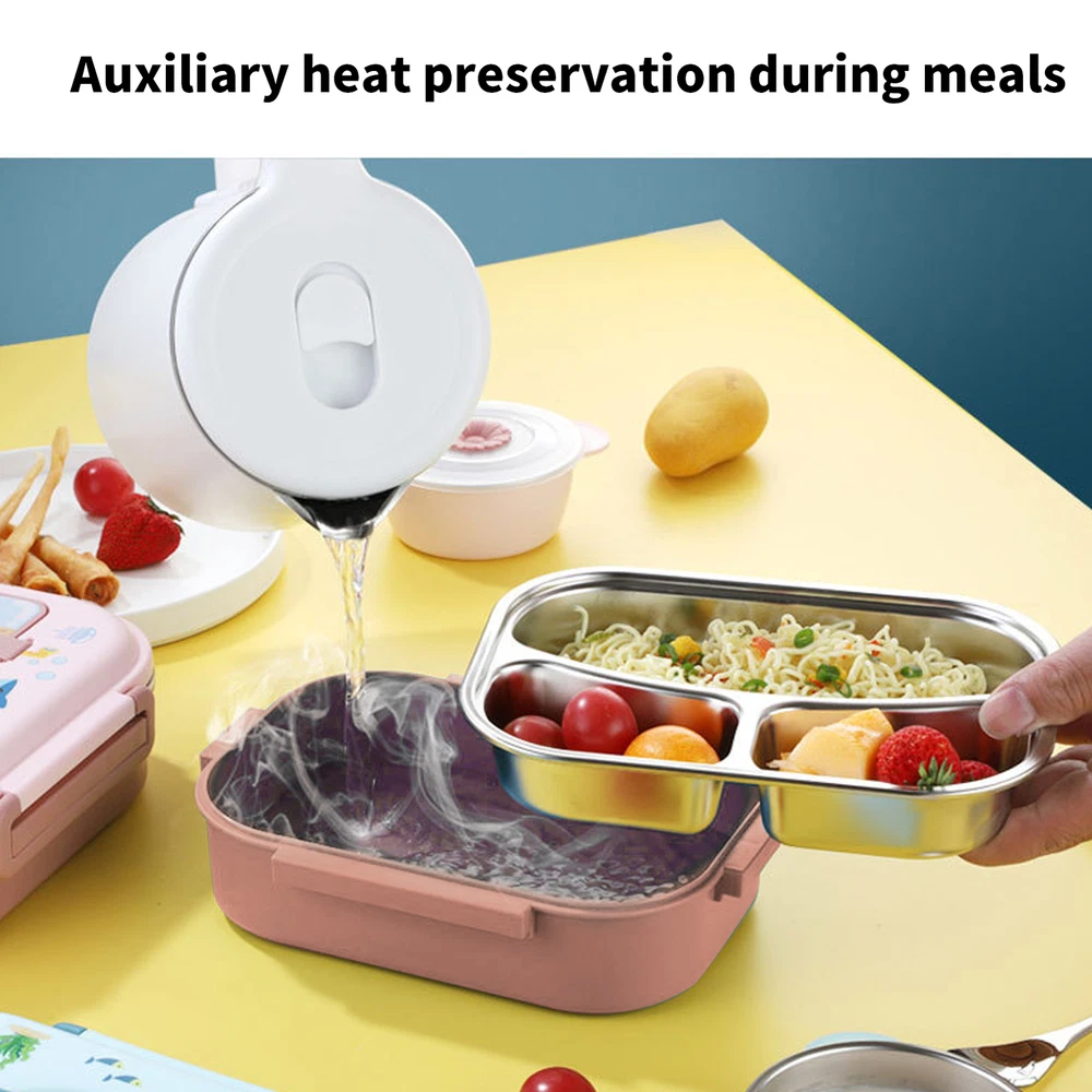 Feature: 1. Our lunch box is lined with a sealed silicone , and the compartment is designed so each compartment is independent, which can ensure that the food does not leak or smell. 2. Good heat preservation effect, please heat the bottom with hot water before putting hot food. After the food is put in, it can keep warm for a long time without cooling down quickly. 3. Easy to clean, the lunch box can be placed in the dishwasher for cleaning. The cover with rubber sealing is recommended to be cleaned separately to extend the sealing performance of the gasket. 4. Made of 304 stainless steel, this is the best snack container for packaging healthy food. Food‑safe materials, reliable and durable, can ensure the health of you and your family. 5. Comes with a portable handle box cover, easy to carry. Upgrade the spoon slot cover to store the spoon for easy carrying. Specification: Item Type: Lunch Box Weight: Approx. 663g / 23.3oz Material: Stainless Steel Package List: 1 x Lunch Box 2 x Lid (1 x Large Lid + 1 x Small Lid) 1 x Spoon 1 x Inner Compartment