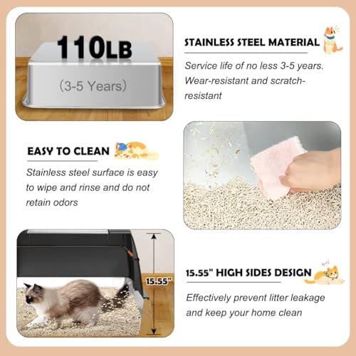 Menu 1. We require immediate payment. 2. We currently accept payment via eBay managed payments only. 3. Once payment is cleared, we will dispatch your shipment within 1-3 business days. Please refer to the "Shipping" tab for more information regarding shipping speed to your destination. Stainless Steel Litter Box, XL Side Entry Extra Large Litter Box with Lid for Big Cats & Kitty, Removable Enclosed Metal Cat Pan with High Sided Enclosure, Scoop, Mat, Footboard (Black) Product description XL SIZE FOR CATS UP TO 16LBS - This stainless steel cat litter box measures 23.6 x 15.7 x 15.55 inches, providing ample space for cats. The 5.9-inch high sides and 3.75-inch top shield offer double protection, effectively preventing litter scatter. Please keep in mind the space it will occupy before ordering THREE VERSATILE MODES - Our extra large litter box offers three modes: fully enclosed for maximum odor control to keep your home fresh; open door for added privacy and visibility, helping cats adjust to the new box; and semi-enclosed for optimal airflow and easy cleaning, especially for cats wearing collars PREMIUM STAINLESS STEEL - Built with thickened stainless steel, this litter box is rust-resistant, scratch-proof, durable and long-lasting. It helps reduce odors more effectively than plastic alternativess, keeping the space fresh. The box holds up to 110 lbs and lasts 3-5 years, reducing the need for frequent replacements EASY-TO-CLEAN DESIGN - The smooth stainless steel surface makes it simple to rinse and wipe down. Its modular design allows you to lift the metal litter pan quickly for cleaning, without having to move other parts. The removable folding door further simplifies daily cleaning, making litter maintenance a breeze ALL-INCLUSIVE ACCESSORIES - Our package includes a stainless steel litter box, scoop, footboard, honeycomb mat, slip-resistant pads, and an instruction manual. The footboard helps kittens and seniors access the box, while the double-layer honeycomb mat traps stray litter, ensuring a clean floor PLEASE MESSAGE US IF YOU HAVE ANY OTHER QUESTIONS, AND MANY THANKS FOR READING ALL OF THIS. Copyright ©#. All Rights Reserved.