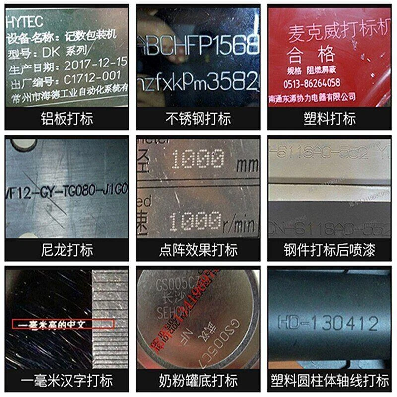 Stainless steel metal marking machine printer nameplate cutting plotter code machine engraving machine electric touch screen offline control Product function: automatic dot pin marking machine, CNC Stainless Steel / Aluminum / Iron / electric Dot Pin metal Engraving Marking Machine for Vin Code . These machines are ideal for replacing a hand punching operation & has a lot of advantages over many similar conventional processes. Hot foil stamping is also replaced with Pneumatic Metal marking machine. These machine are capable of marking on soft & hard components. These machines can mark all metals such as Steel, Stainless Steel, Copper brass, Gold, Silver etc.Ideal for marking on hard plastics. These machines mark permanent Batch numbers, Serial numbers, Barcode scanned data, Data from PLC, Date Codes, Month Codes, Year Codes, etc. Machine parameters: One type of portable electric marking machine No gas source, marking the first choice, simple operation, easy maintenance Support system: Windows xp or Win7/8/10 system Model: 1912 / Offline control2420 / Offline control3025 / Offline control Marking range: 190x120mm240x200mm300x250mm Weight: about 20KG /24KGabout 24KG /28KG about 26KG /30KG Packing size: about 400x350x350mmabout 450x400x350mm about 500x450x350mm Lifting height: 10mm Marking speed: 50mm/s Marking depth: 0.1-0.6mm depending on the material hardness Needle hardness: 93HRA Needle distance: 0.5-1mm Voltage: 110V-220V Power: ≤200W Operating temperature: -15 ~ 45 degrees Celsius Applications: all kinds of metal and non-metallic plane marking; a variety of nameplate, signs marking, affordable, simple operation Note: Electric -----------need Customer Preparation: Computer; Offline control-----------not need Computer; eBay Cross Border Trade powered by ChannelEffect