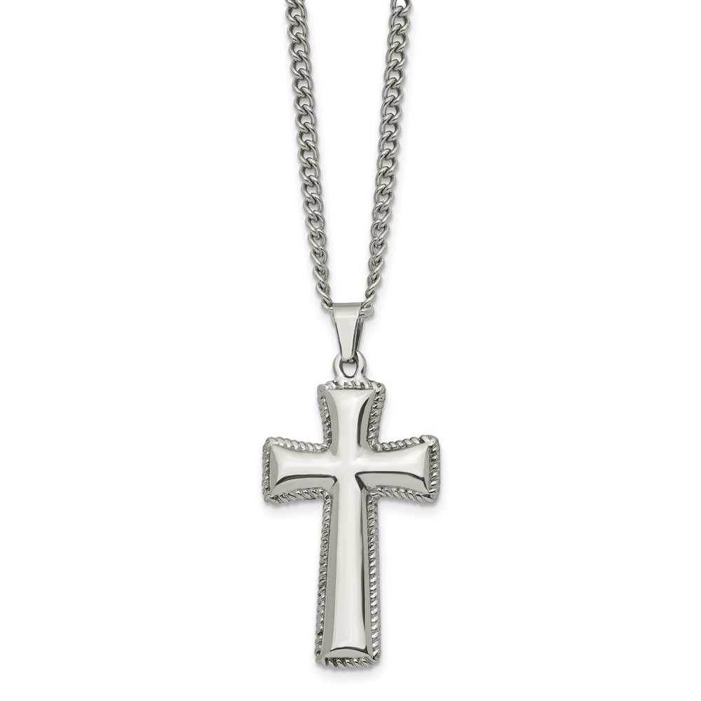 $ 48.58Polished Titanium Laser-Cut Cross Pendant Necklace 22 Inch 11.64g