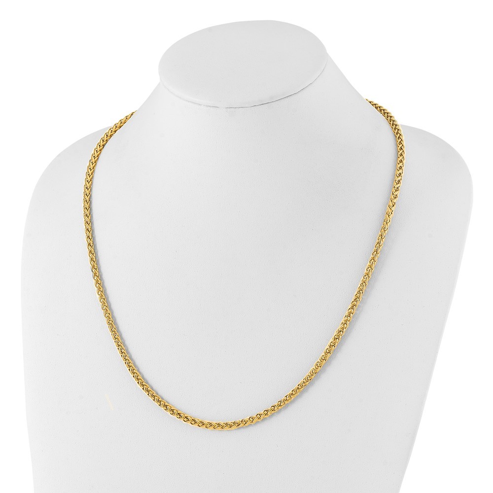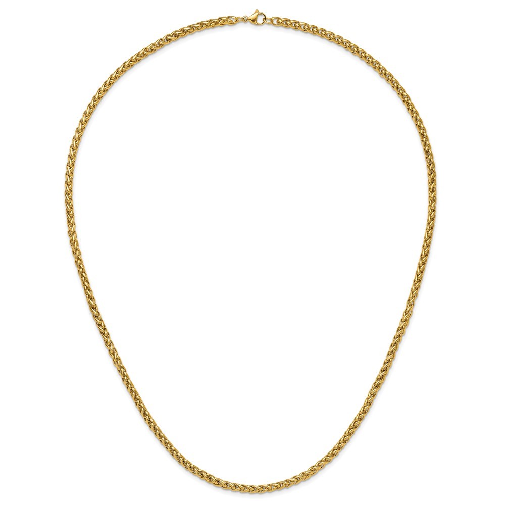 Finish:Polished|Length of Item:24 in|Chain Length:24 in|Chain Type:Spiga (Wheat)|Chain Width:4 mm|Clasp /Connector:Lobster (Fancy)|Material: Primary:Stainless Steel|Item Weight U/M:gm|Width of Item:4 mm|Packaging:Gift Boxed|Product Type:Jewelry|Jewelry Type:Necklaces|Sold By Unit:Each|Necklace Type:Chain Styles|Gender:Unisex|Material: Primary - Color:White|Plating Color:Gold Tone|Plating: Chain:IP-Plated All weights and measurements are approximate and may vary slightly from the listed information. Welcome to diamond_6720 Payments We accept all Ebay approved payment. Please sent the payment to us within 8 days after the auction has ended, or you will have unpaid case auto open by eBay. Shipping Policy We will ship all items within 1 business days of purchase during the work week (M-F) excluding holidays. If you order on Friday, your order will be shipped the following business day. Tracking will be provided when it becomes available. We will only ship to a PayPal Verified Address. Please make sure your address is current and correct. If the information does not match, your order may be canceled. Buyers are responsible for all customs, duties and taxes for your respective countries. Delivery times for International Shipping will vary. California Buyers Pay 9.0% Tax on all orders. case auto open by eBay. Return Policy & Exchange Returns or Exchange are accepted. Buyer must contact us within 30 days after the item is received. Item must be returned in unworn and resalable condition. We will only issue a refund for the purchase price, excluding any shipping fees. If we are at fault, we will provide a full refund. Buyer is responsible for all return shipping costs. BUYERS FEEDBACK If you have any concerns regarding your purchase, please contact us via eBay Message, we assure you that a satisfactory resolution will be reached. Your feedback is very important to us Do remember to give us 5 star rating(*****) if you are satisfied with our product & service .