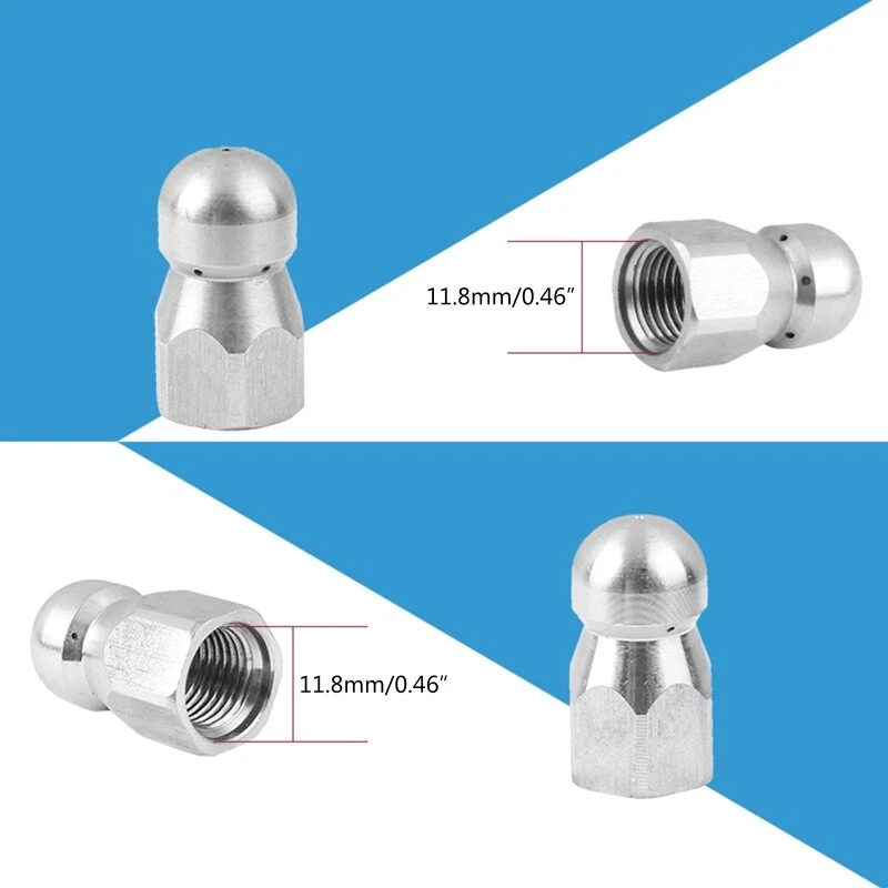 Features: Wide use: It can be used in combination with various high-pressure cleaners. Material: High quality stainless steel materials, durable. Tear wearing: Good wear resistance, spraying evenly. Durable: A Filter on your system,not easy to jam, no leakage. Wide use: Energy-saving water saving, low cost.Widely used in cleaning applications for general sewers, sewer cleaning, industrial pipeline cleaning. Adjustable: It can be rotatting, three nozzle holes at back, spraying evenly. Specification: Material: Stainless Steel Optional styles: -36/-33/-46/-43 -36/-33 inner diameter: approx.1.53cm/0.60in -46/-43inner diameter: approx.1.18cm/0.46in Color: As the picture shown Quantity: 1Pc Note: Please allow 0-1cm error due to manual measurement. pls make sure you do not mind before you bid. Due to the difference between different monitors, the picture may not reflect the actual color of the item. Thank you! Package Contents: 1x Spraying Nozzle (other accessories in the picture is not included.)