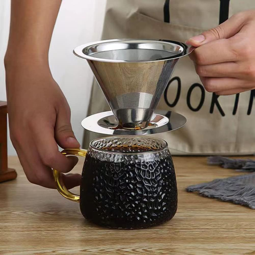 This pour-over coffee filter is a game-changer! The stainless steel build feels solid and cleans easily, plus it brews smooth, rich coffee every time. Love that it's reusable—no more paper filters! Perfect size for home or travel, and it looks sleek on the counter. Great value for coffee lovers who want quality without the waste.