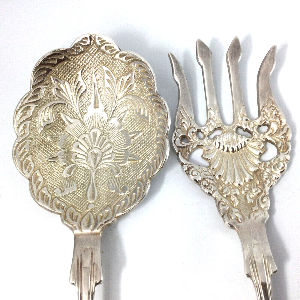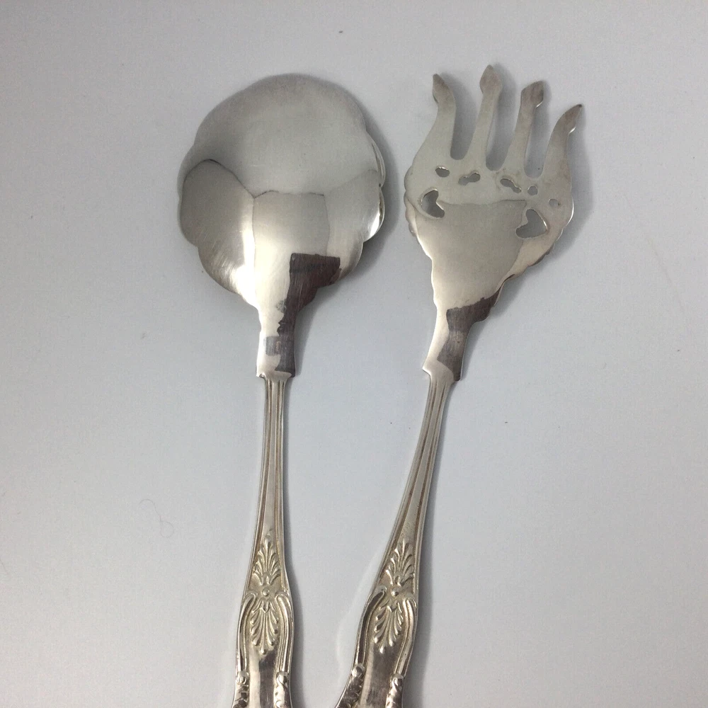 Stainless Steel Silver Color Serving Utensils Spoon Fork Set of 2
